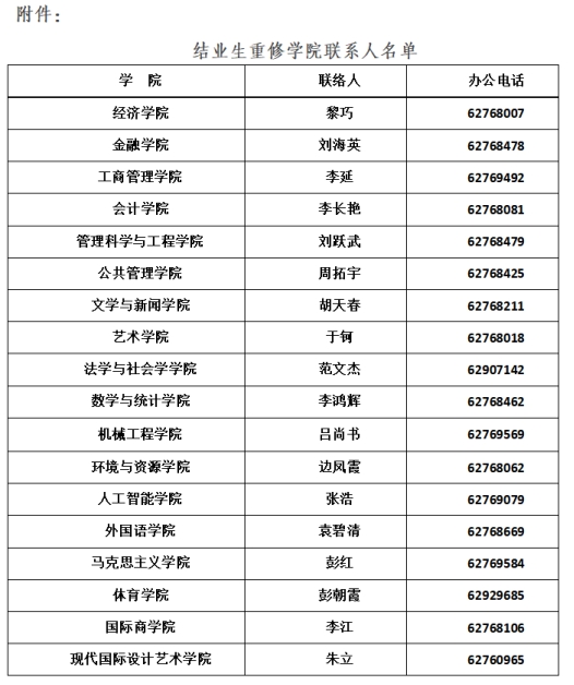 附件:结业生重修学院联系人名单