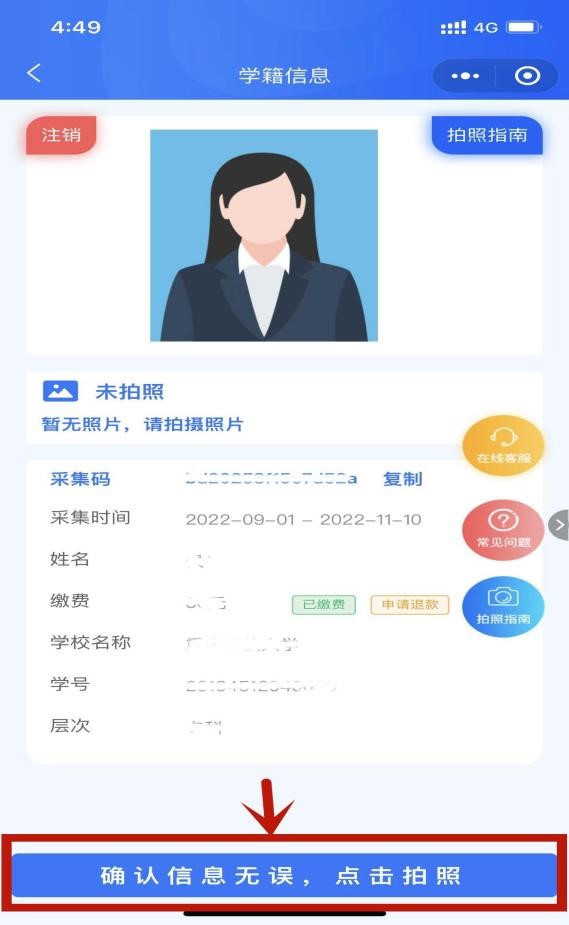 4. 缴费后,观看拍照指南,按小程序步骤,上传手机相册中已有的半身证件照或自助拍摄,完成采集。