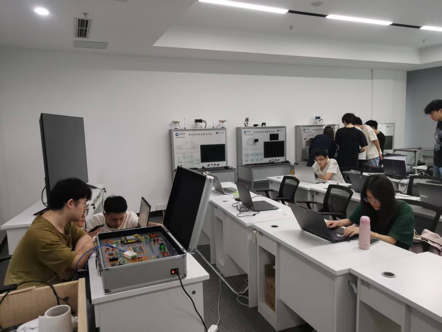 在西部智联科学谷基地,企业工程师们为同学们介绍了智能车辆测试技术专业知识与人才需求。同学们通过在车载雷达传感器实训台、视觉感知传感器实训台、线控转向实训台和线控制动实训台上试操作,以及和工程师面对面的交流,加深了对自动驾驶汽车传感器技术、自动驾驶汽车线控技术、车载通信技术和车路协同技术的理解。