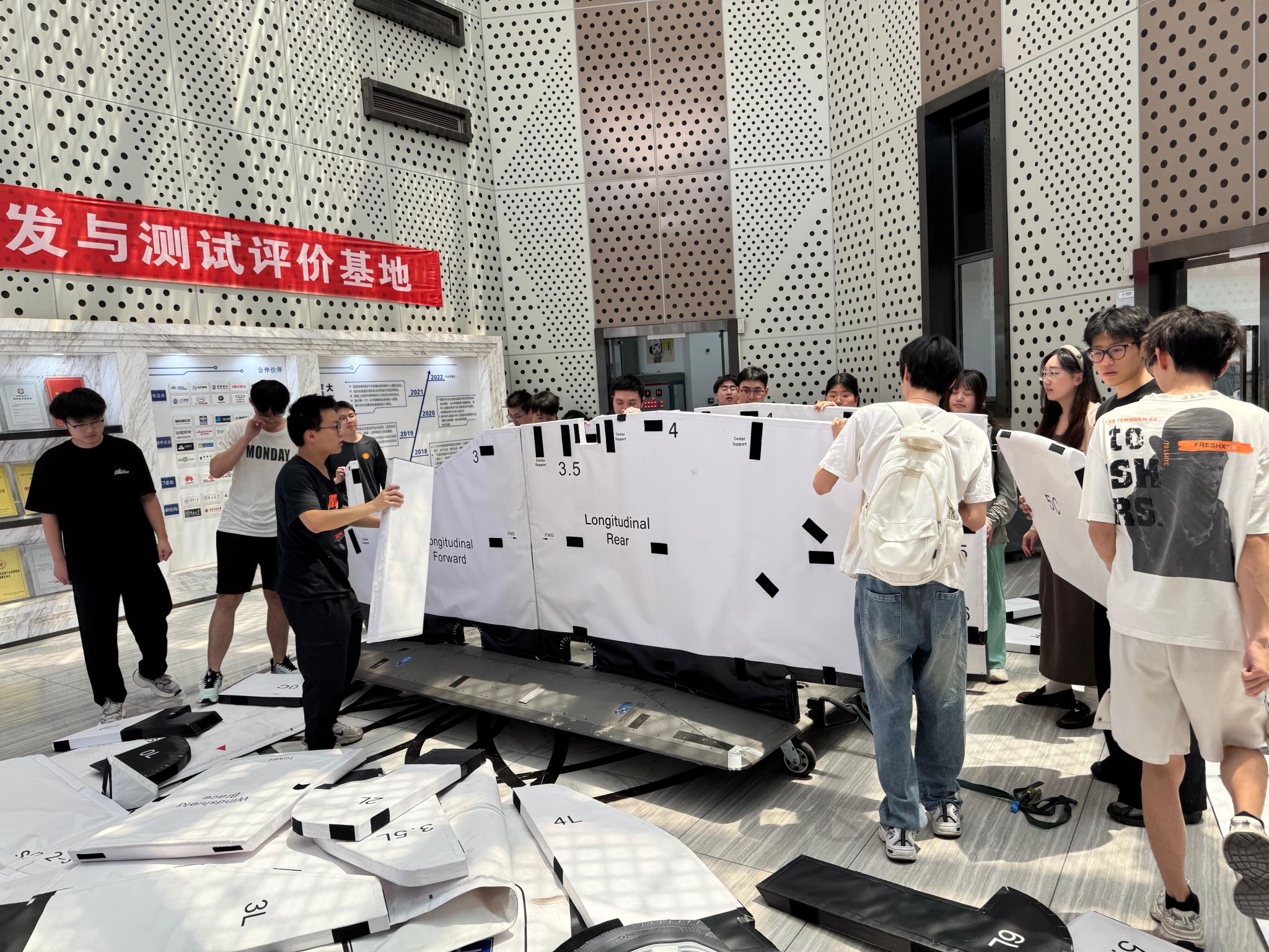 在招商车研金凤基地,同学们先后参观了碰撞大厅和试验场地,并亲自动手组装了GST假车、调试配置了V2X测试设备。工程师们通过现场演示与理论讲解等方式,向学生讲解了智能座舱人机交互试验、驾驶员状态监测试验、车载以太网试验、电磁兼容试验、车载紧急呼叫系统试验等各种测试试验的原理和具体操作实施方法。