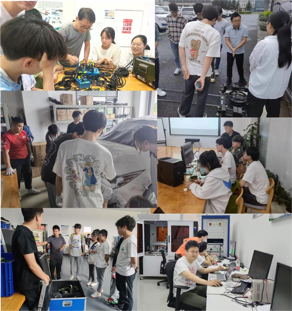 在习总书记关于青年工作的重要思想指导下,为进一步落实人才制度,索并完善人才培养策略,引导在校大学生投身社会实践,在实践中增长工作本领、提升思想,树立正确的价值观、事业观,122cc太阳集成游戏与招商局检测车辆技术研究院有限公司(下简称招商车研)合作开展了2020级智能网联汽车班学生专业实习,本次实习既是我院与招商车研一次深度的校企合作,同时也是我院智能车辆工程专业结合学校的+多科性大学办学定位,聚焦智能车辆设计、测试系统构建的人才需求,开展的一次新工科育人模式的深入探索与实践。本次生产实习中实践部分为期3天(614—616日),实践内容主要包括驾驶机器人拆装、数据采集、目标物系统调试、AEB测试人横穿装置布置等九个项目。