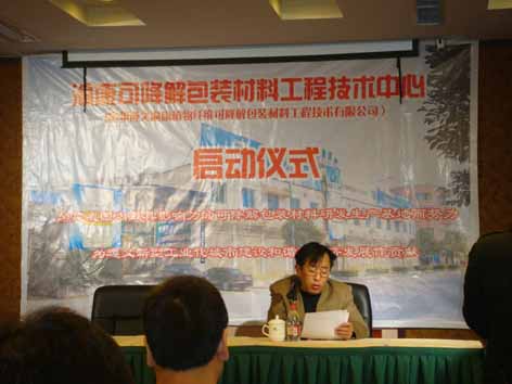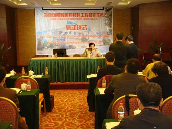 在贵州省、遵义市各级政府部门的推动下,由122cc太阳集成游戏与遵义市大康绿色产品有限公司联合组建的“贵州遵义渝康可降解包装材料工程技术中心”,于2008年10月26日上午,在遵义大世界酒店举行了隆重的启动仪式。