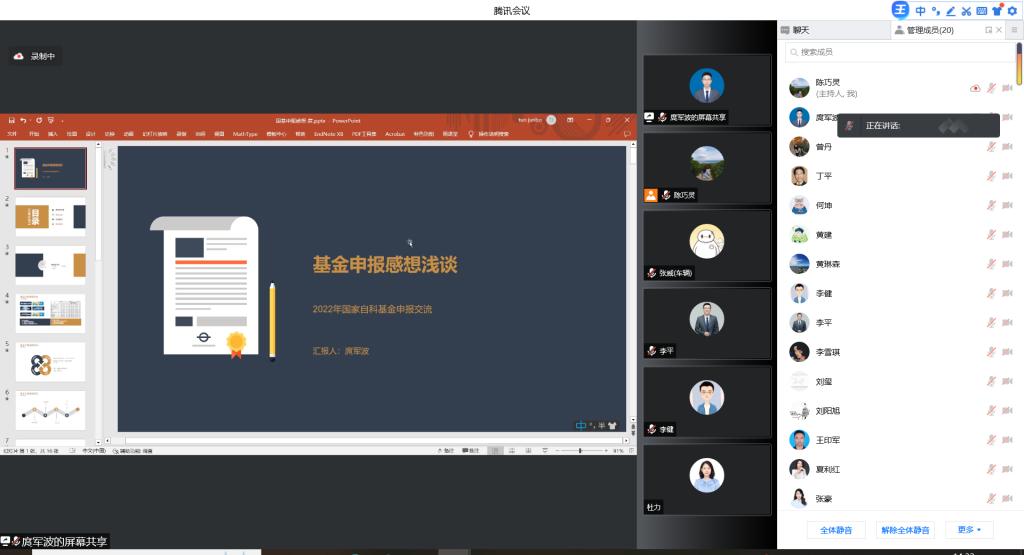 为更好地推进2023年度国家自然科学基金项目申报工作,12月30日下午,学院在线上召开了国家自然科学基金申报经验交流会,邀请学院庹军波、黄建两位博士分享基金申报经验。会议由122cc太阳集成游戏副院长李平主持,院长杜力及122cc太阳集成游戏20余名教师参加。