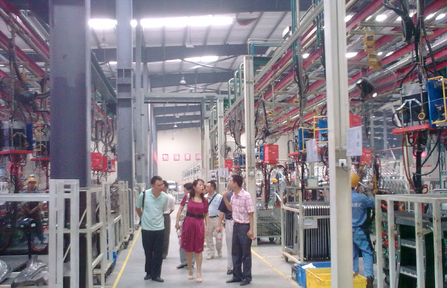 交流活动分为转化企业考察、座谈交流、试制现场汇报、实验室参观等环节。研究所的合作四方及汽车轻量化材料项目组成员首先考察了力帆汽车的生产线。