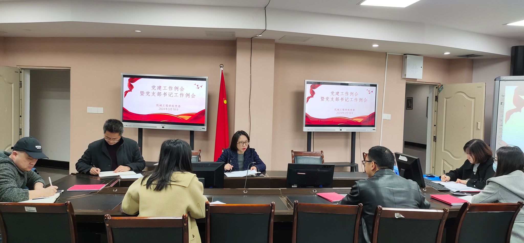 会上,党委书记杨娟领学了“习近平总书记关于党的建设的重要思想”。党委副书记陈春洁领学了“习近平总书记在二十届中央纪委三次全会上的重要讲话”。党建联络员邢月军讲解了教工党支部换届相关内容,专职组织员张晓琴布置了学生党支部组织发展工作和党费收缴工作,党委书记杨娟对巡察整改评估工作问题进行反馈,各党支部书记交流近期党支部工作。