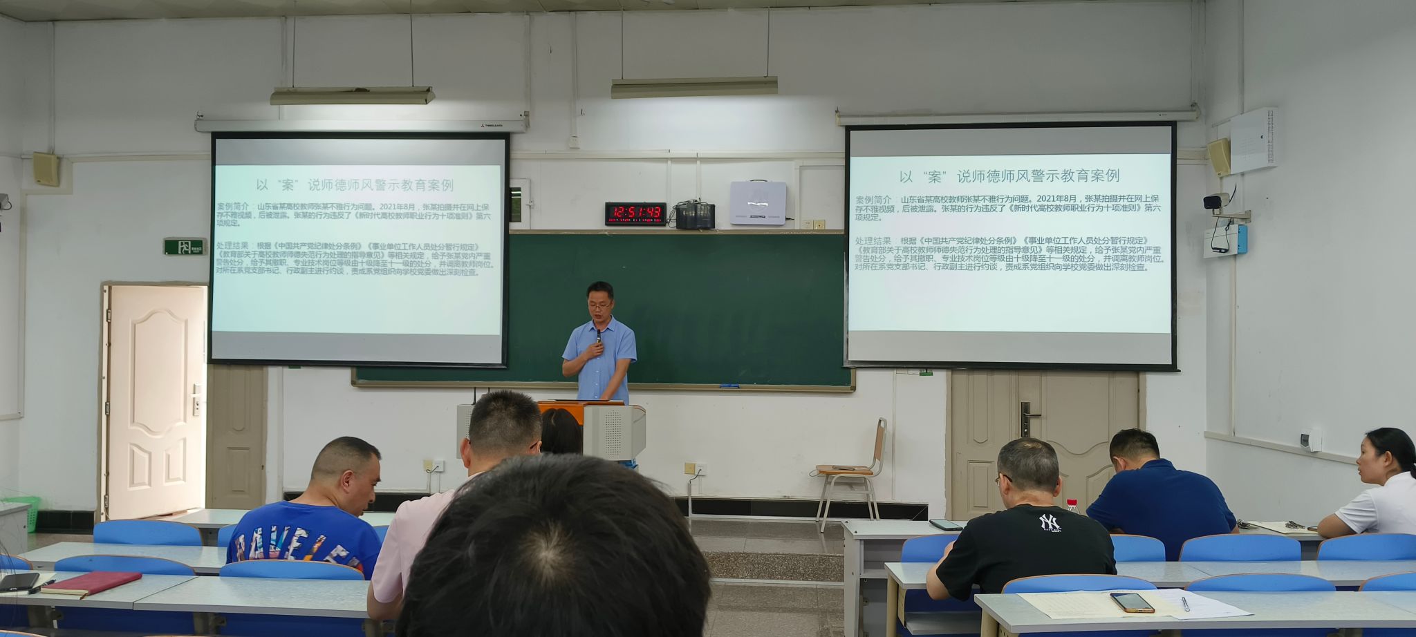 学院坚持以学立德弘扬清正教风,遵循教育规律、发展规律、建设规律,采用由浅入深,以点带面,横纵结合,严管与厚爱并重,高位引领与底线要求结合等方式,不断激发教师内生动力。会上,陈春洁领学了习近平总书记近年关于师德师风建设的重要指示、批示和重要讲话;随后简要回顾了全国“最美教师”王义遒、全国“教书育人楷模”史宁中、全国“教书育人楷模”任继周、全国“教书育人楷模”刘红宁、全国“教书育人楷模”刘少坤、全国“教书育人楷模”许斌等躬耕教坛潜心教书育人的先进典型事迹;最后,着重开展了以“案”说师德师风警示教育,以全国高校系统近年发生的11个代表性真实案例警示教育学院全体教职工,包括违规获取津贴问题、不雅行为问题、课堂上发表错误言论问题、网络上发布 和转发错误言论问题、学术不端问题、性骚扰学生问题、与学生发生不正当关系问题、违反教学纪律问题、要求学生从事与教学无关事宜问题、私自收取并侵占学生费用问题、饮酒驾驶问题等。
