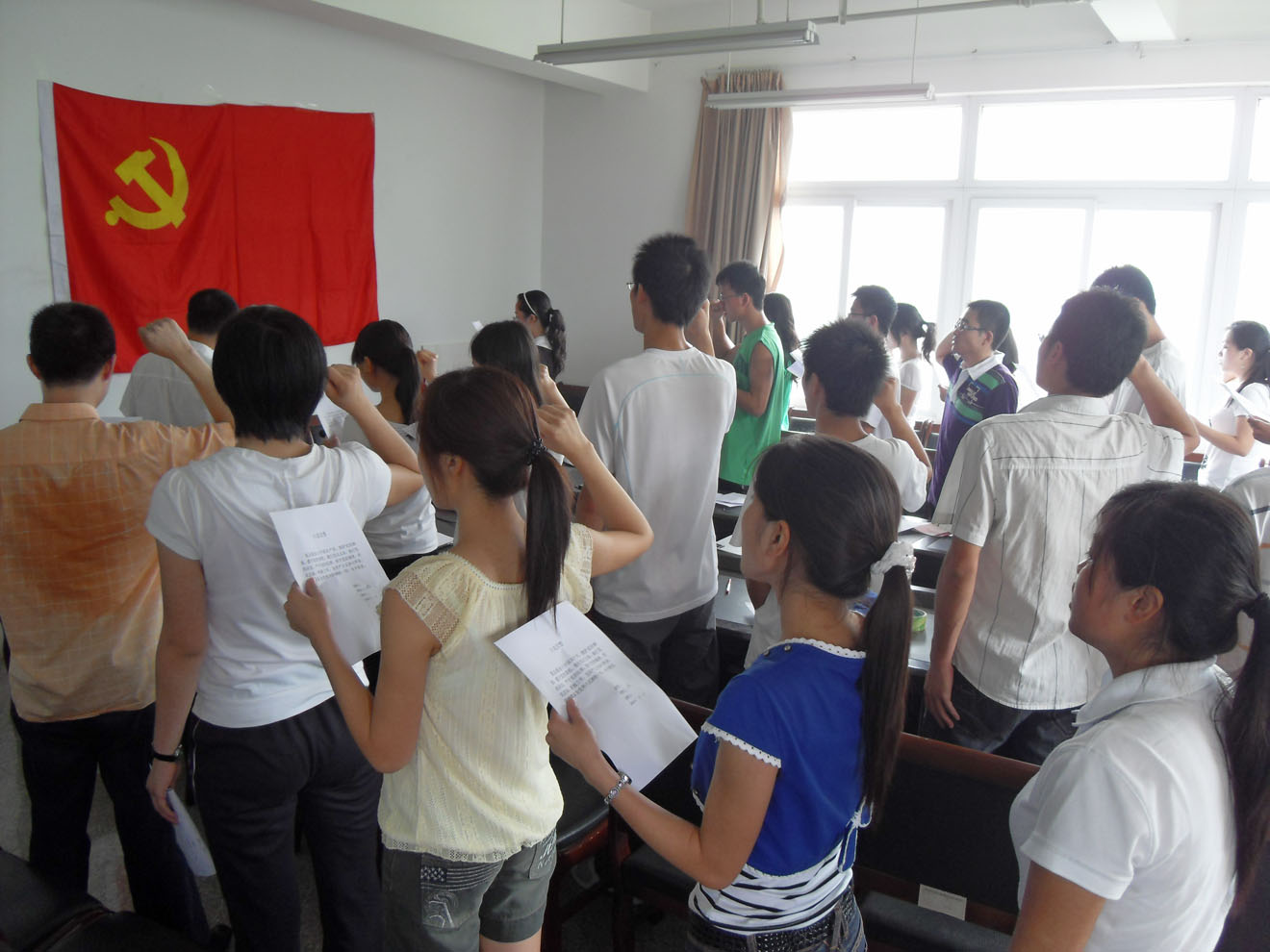 “我志愿加入中国共产党,拥护党的纲领,遵守党的章程,履行党员义务,执行党的决定,严守党的纪律,保守党的秘密,对党忠诚,积极工作,为共产主义奋斗终身,随时准备为党和人民牺牲一切,永不叛党。”2009年6月15日中午12点30分,122cc太阳集成游戏会议室传出了一阵阵嘹亮高亢的声音,学生一支部的28名预备党员正在进行庄严的宣誓仪式。出席此次仪式的有学生一支部支部书记袁程利老师,06级的邱全奎老师、08级的王微老师。