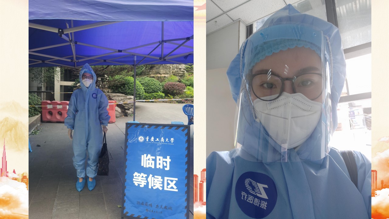 由于学院对于17机制、机电专业采取的自愿返校政策,这两个专业的返校人数比例高达80%,在5.19、20日两天我也迎来了学生的返校高峰。在19日下午,校医院给我打电话,通知我的一位学生在校门口体温检测三次都是发热状态,需要马上送南岸区人民医院进行相关检查。我立即赶到校门口,穿上防护服,坐车陪同学生一起前往医院。一边再次确认学生的返校路线是否存在风险,一边安抚学生告知这是学校的规定程序,不用担心,在目前的形势、自己做好防护的情况下被感染的几率很小。在陪同进行了胸片、查血、核算检测等一系列检查之后,我的衣服都被汗湿了,庆幸的是学生只是简单的感冒,但这段特殊的体验让我明白了防护服下的医护人员是多么不易。