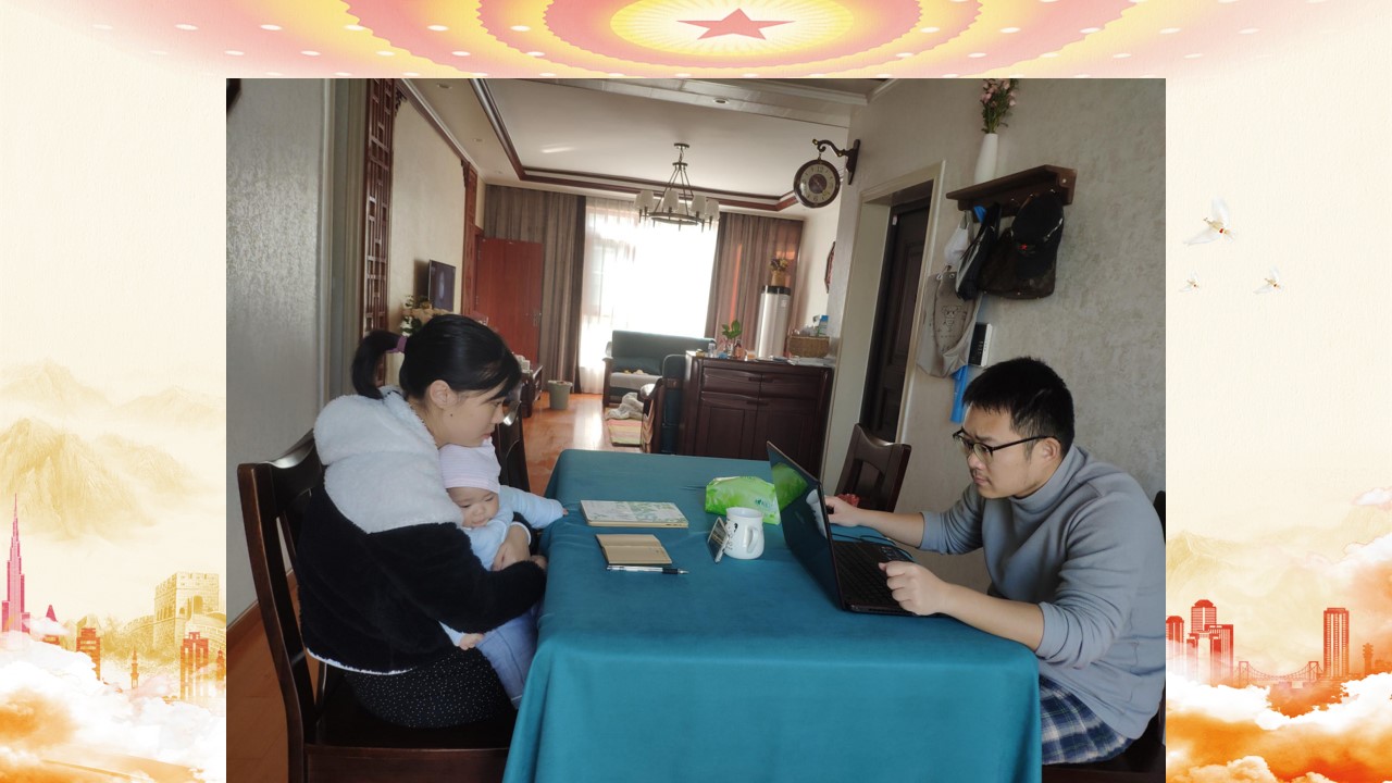 当飞机落地时,我总算是松了一口气,因为我们能够回到属于自己的家。到家后,社区的工作人员很快来家里测量体温,发放居家隔离告知书,我们一家三口开始了14天的居家隔离生活。记得在学生时代,导师在课堂上问我毕业以后想做什么工作,我回答的是“家庭主妇”。在疫情期间,我体验到了。在我看来,家庭主妇这个岗位并不轻松,但是能为家人付出,让家人享受更高质量的生活,是一种很实在的幸福。每天工作,学习,带娃,做饭,最踏实的事是看着学生每天在群里的自己及家人无感染的报告,最幸福的事是看着家中的小不点儿一天天的长大。