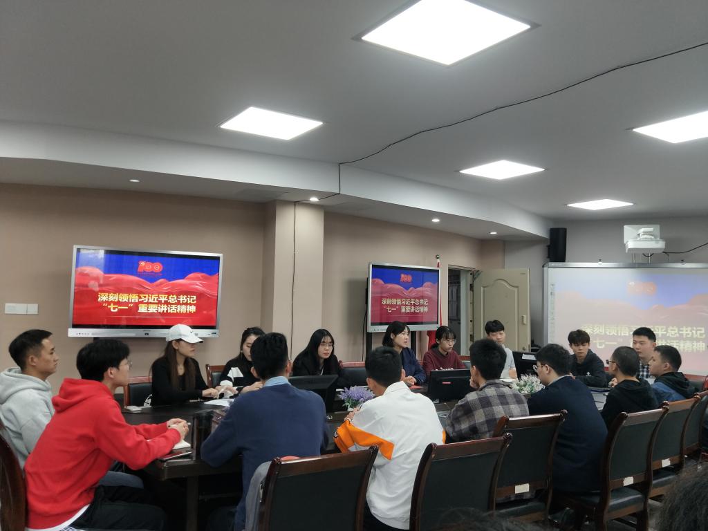 2021年10月19日,122cc太阳集成游戏学生党员一支部在9教709会议室就深刻领会习近平总书记七一谈话重要精神进行了探讨。出席本次会议的有122cc太阳集成游戏学生支部书记邢月军老师和一支部的全体党员同志。