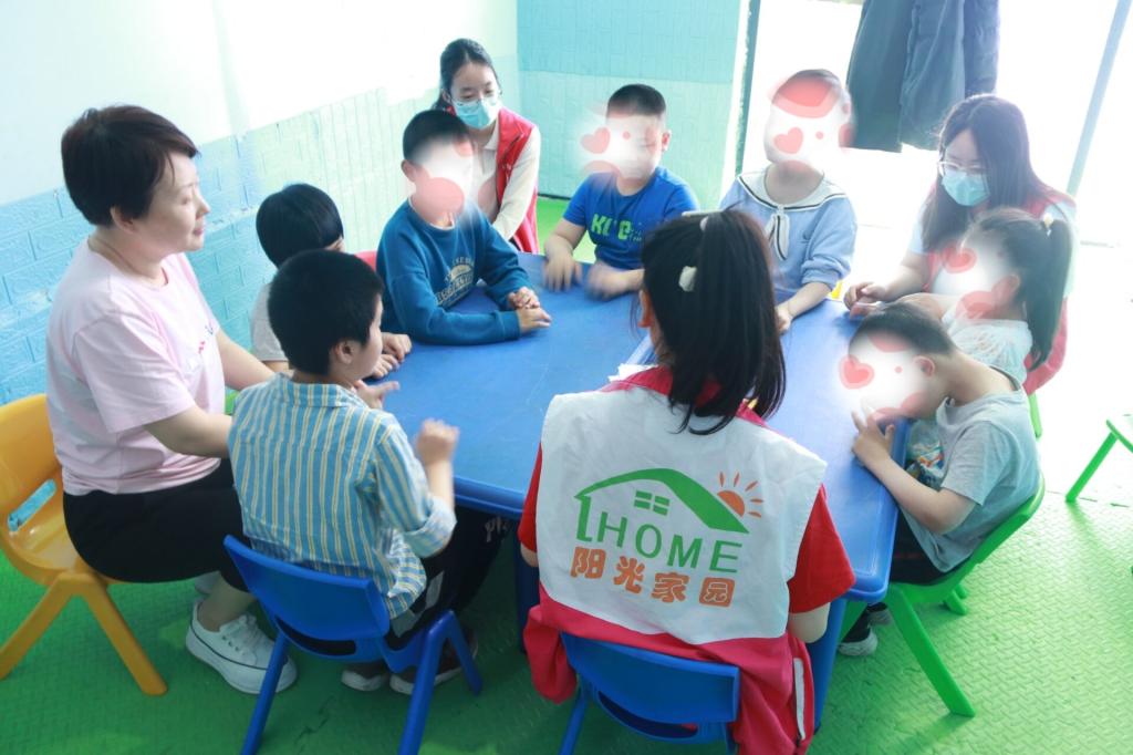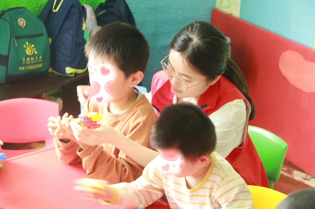 学生党员和志愿者们在老师的带领下走进课堂,协助老师对小朋友们开展日常训练课程。课程内容丰富多彩,有锻炼肢体协调能力的活动课、锻炼想象力的美术课、锻炼动手能力的手工课等。学生党员和志愿者们与小朋友一起伴随音乐有节奏舞动,一起在美术课上涂色创作,小朋友们还积极举手回答问题,课堂充满了快乐、温暖与感动。最后,大家一起合影留念,一张张定格的照片记录下志愿者们青春奉献的印记。