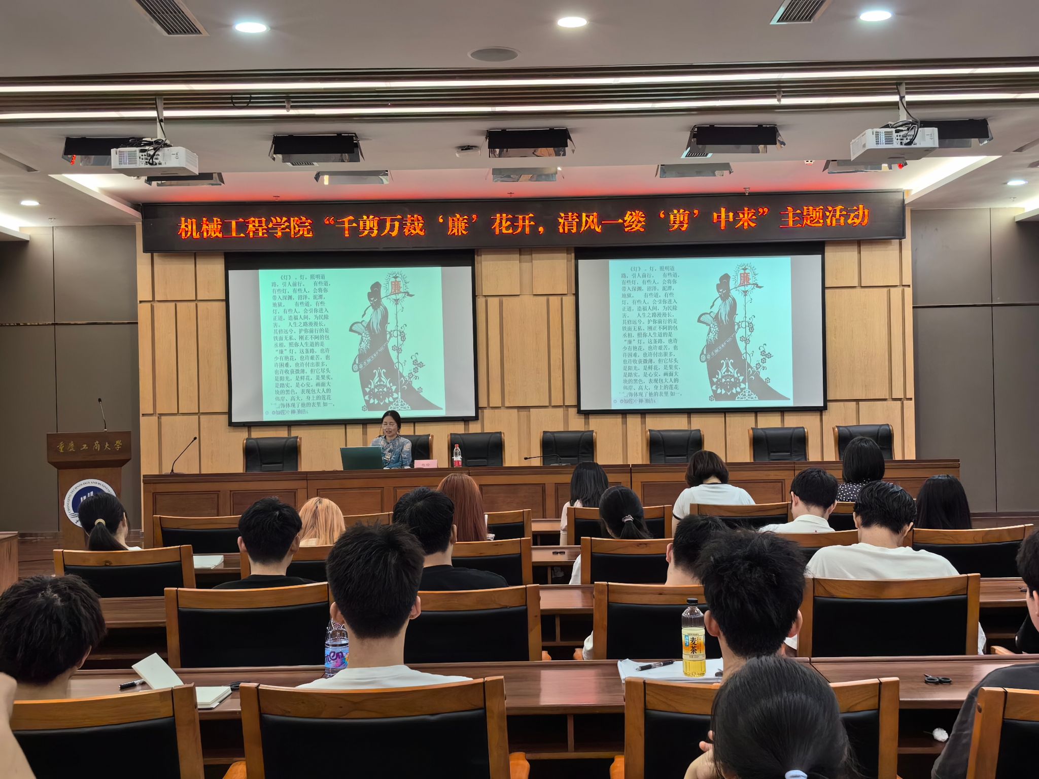 育人之基,清廉为要。为积极响应近日习近平总书记“努力培养更多让党放心、爱国奉献、担当民族复兴重任的时代新人”重要指示,将传统文化中的清廉因子融入思政教育和师德师风建设,结合机械工程学科特点,推进红岩先锋变革型组织建设和清廉学院建设走深走实,5月17日,重庆工商大学122cc太阳集成游戏邀请重庆市“巴渝工匠”年度人物、非遗剪纸项目传承人杨玲到学校现场传授剪纸手工艺,并以此引导广大师生在传承非遗剪纸技艺的同时,感受廉洁文化的熏陶,共同营造崇廉尚廉的良好校园氛围。
