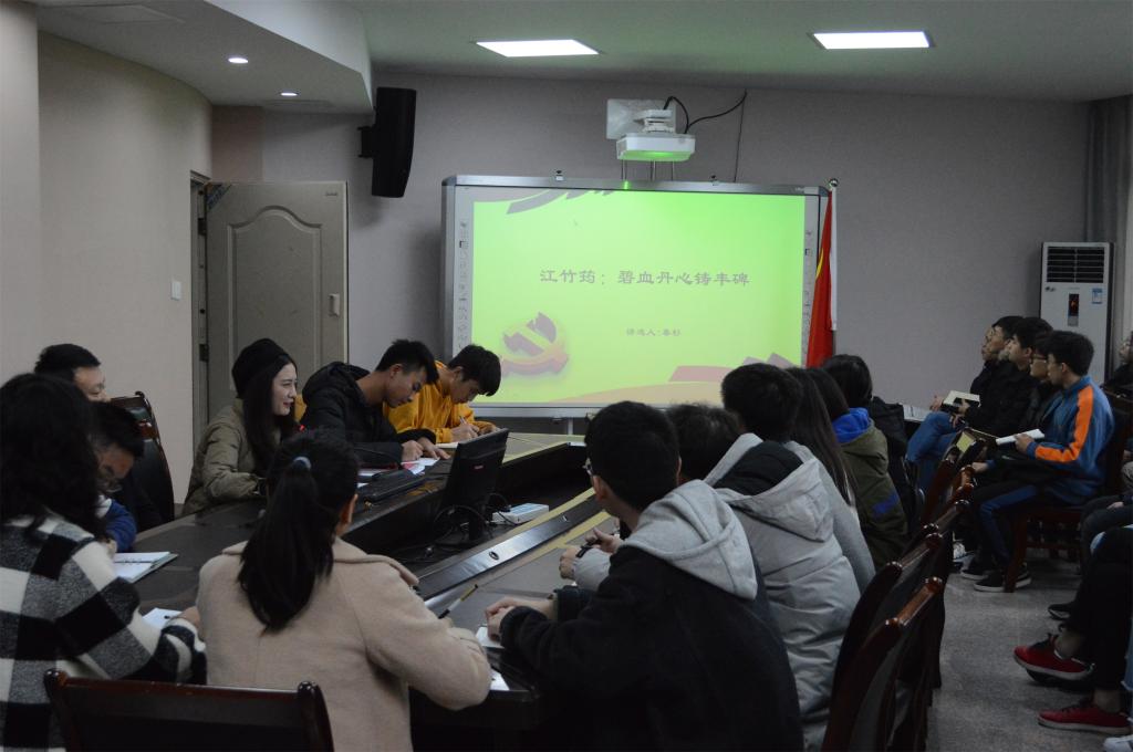 首先,刘洋书记向全体学生党员和学生干部介绍了“讲红色故事,讲革命精神”的重要意义,青年大学生们不能忘记历史,“红色精神”和“红色基因”不能丢。接下来学生一支部书记秦杉带来了以“江竹筠:碧血丹心铸丰碑”为主题的红色故事宣讲,秦老师声情并茂的宣讲让到场学生明白树立坚定信念的重要性,学习江姐英勇顽强、坚贞不屈、坚定理想信念和爱国爱家的精神。故事结束后,同学们谈了自己的感想。从同学们积极的发言中总结出以下三点:1.作为青年大学生要敢于拼搏,坚定信念,坚定理想,抵御诱惑;2.爱国爱党,不忘初心,牢记历史;3.坚守底线与理想信念,不畏外界恐吓。最后,刘洋书记为本次宣讲活动做出了总结,他希望大学生们要有理想有信念有目标,克服学习和生活中的各种困难,通过从学习革命先烈的革命精神中吸取自身成长的营养,在社会主义建设和实现伟大中国梦的路上,青年大学生应坚定共产主义信念,刻苦学习,奋发有为。
