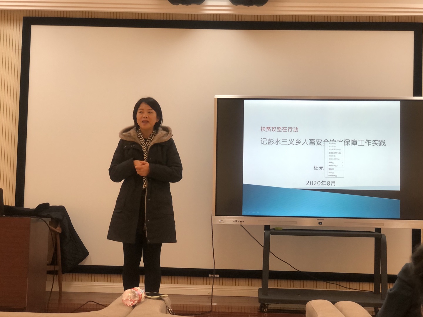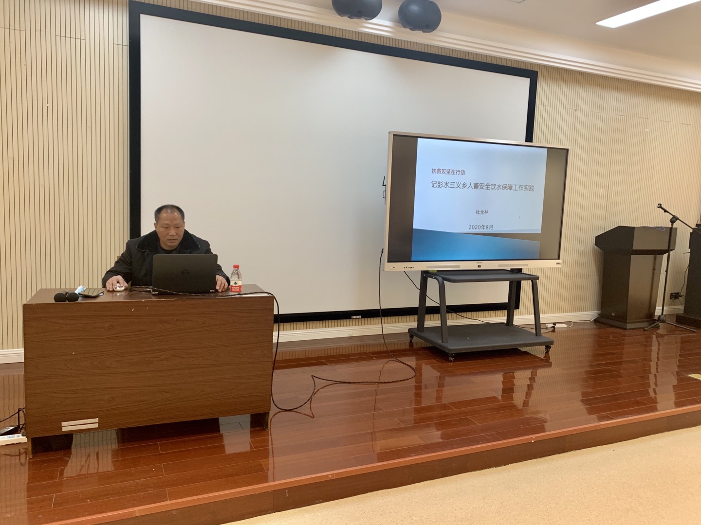 活动第二项议程,邀请后勤处副处长杜元林作彭水三义乡扶贫工作分享。杜元林副处长讲述了他本人到彭水三义乡开展扶贫工作以来,为保障三义乡人畜安全用水所做的各项努力,以及在扶贫工作中自己的收获和感触,言辞恳切,真情流露,得到了观众的一致掌声。他谈到,在彭水县三义乡的扶贫工作,得到了学校的大力支持和关心关爱,工作成绩的取得是因为有学校的坚强的后盾及全校教职工的支持。他表示,作为重庆工商大学的一名党员干部,为学校的发展而努力工作是他的坚定信念,扶贫攻坚的使命与担当,是他勇敢向前的精神力量。