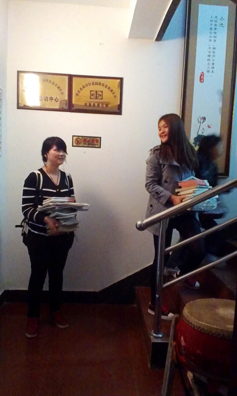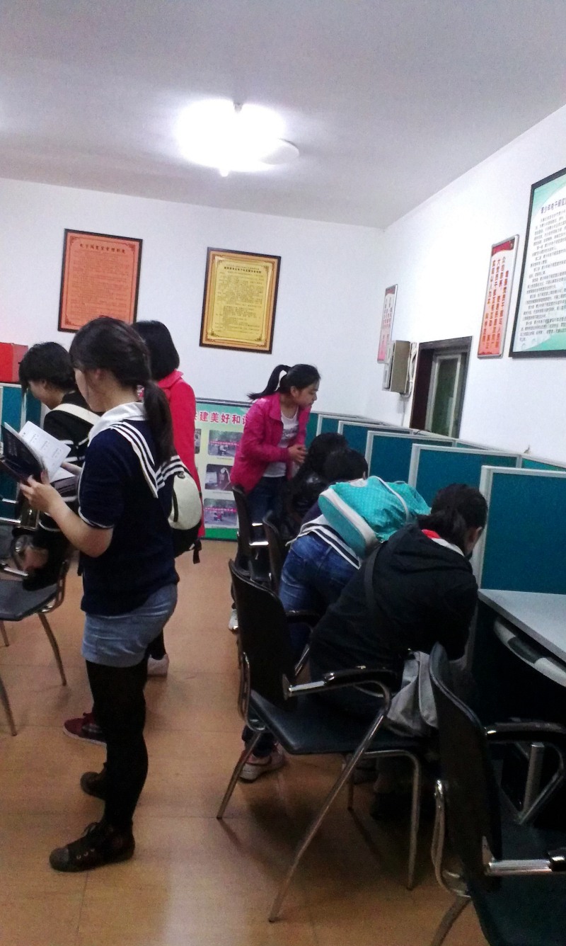 当天下午一点半,志愿者们从学校出发,到了市民学校,就得到了他们的热烈欢迎。一切准备就绪之后,十几个人就分成了两组,一组整理市民学校募捐来的书籍,另一组教孤寡老人关于电脑的基本实际操作。分工明确以后,同学们就积极地行动起来,整理图书的一组人在当地负责人的带领下到了二楼的图书室,地面上有一大堆杂乱无章的书籍,于是同学们都积极地行动起来,不一会儿功夫,地上的那一大堆书就已经井井有条的摆放在书架里。另一组同学在楼下教那些爷爷奶奶一些简单的电脑使用技巧,整个过程爷爷奶奶们都非常地活跃,他们积极地提出他们不懂的问题,同学们也非常耐心地为他们回答并且解决这些问题。