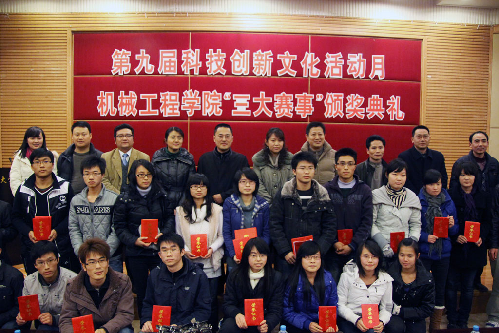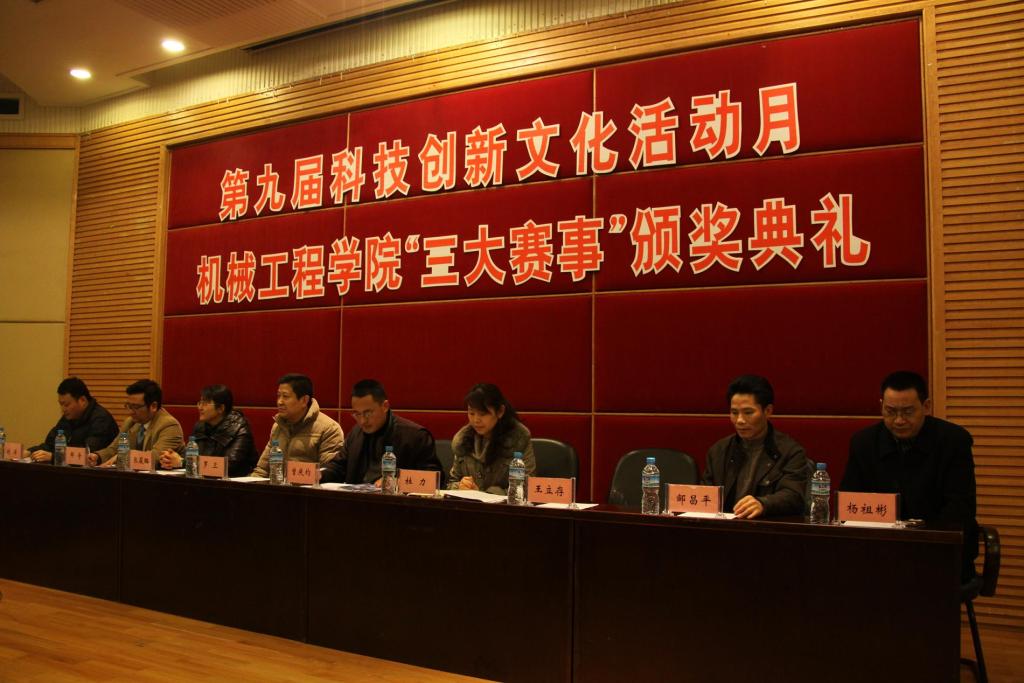 第九届科技创新文化活动月122cc太阳集成游戏“三大赛事”历经两个多月的竞技,在平安夜圆满落下帷幕。为了表彰脱颖而出的优秀个人、团队及作品,122cc太阳集成游戏于2010年12月24日16:00在7200隆重举办了“三大赛事”颁奖典礼。校教务处曾庆均处长,学生处张筱璐副处长,校团委邹奇副书记,学院党总支罗卫书记、杜力院长,邹昌平、杨祖彬副院长,刘洋副书记以及赛事的指导老师,学院的班主任辅导员老师应邀参加了颁奖典礼。
