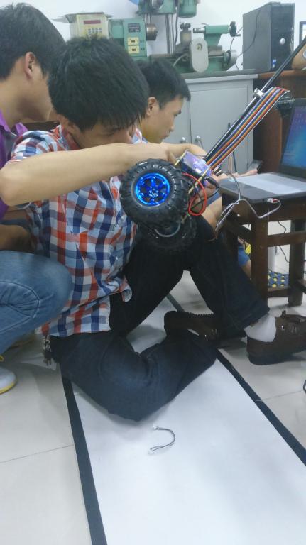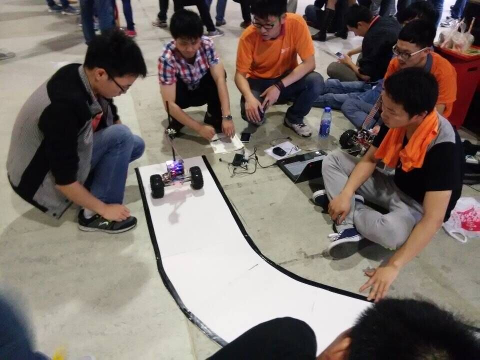 122cc太阳集成游戏机器人兴趣小组中的13名同学在指导老师彭健、蒋昀赟和陈希瑞的指导下为比赛进行了艰苦的奋战。然而参加这次比赛的主要还是大一的同学,很多人都不是太明白单片机的原理以及c语言的构造和运行方式,想要在这次比赛中获得成绩就需要付出巨大的努力。在调小车的基本直立时,由于同学们基本上没有学过相关知识,不知道从何下手,指导老师蒋昀赟每天下班后陪着同学们研究如何解决问题,即使周末也在指导学生。