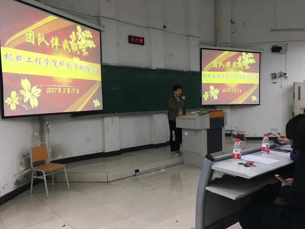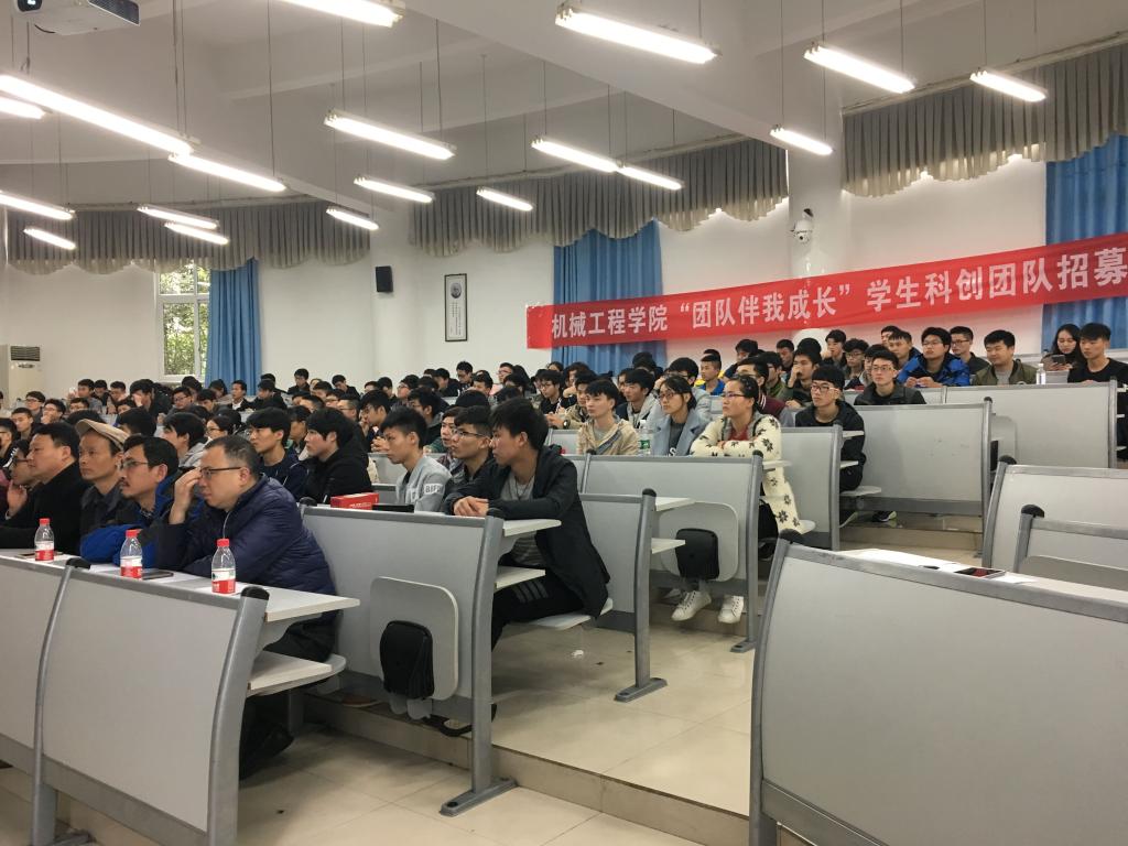 2017年3月17日下午16:10,我院第二届“团队伴我成长——学生科创团队招募宣讲会”在兰花湖20211教室举行。参加本次宣讲会的有122cc太阳集成游戏党总支刘洋书记、杜力院长、李平副院长、各系主任、实验室主任、工程训练中心主任、学团办主任、09级校友团队“卓越工程师小组”代表、122cc太阳集成游戏两支学生科创团队--“机械师”团队、“汽车人”团队代表以及学院14、15、16级部分学生。本次宣讲会由学院学团办主任李玲主持。