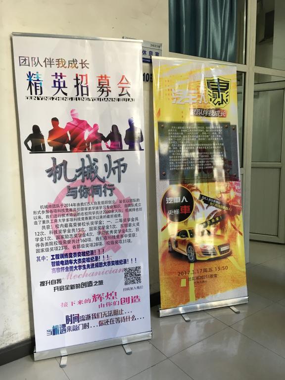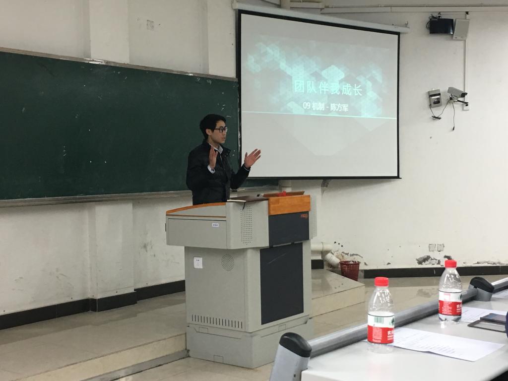 13级学生黄凯代表“机械师”团队招募,给大家分享了团队组建、成长的经历和今后的团队活动安排,并诙谐地向与会者提问:“你想成为大家眼中的大神吗?你想每年奖学金都是五位数吗?你想学会操作各种高大上的仪器吗?你想去荷兰交流吗?你想代表学校到全国各地比赛吗?——那么加入机械师团队吧!”博得了满场喝彩,也把整个招募活动推向了高潮。接下来14级学生郑方杰代表“汽车人”团队进行招募宣讲,他以讲故事的方式,回顾了从一年级在“打游戏中混过”到通过科技竞赛获得全国二等奖后免试专升本到122cc太阳集成游戏的心理历程,从打工的经历再到创业思想的萌发,从而组建“汽车人团队”,他们告诉大家的是“只有经历过,才知道缺什么……”他们的招募词朴实,却是另一种感动。作为已毕业4年的昔日学院的卓越工程师”团队代表,在重庆海德世拉索系统有限公司就职的陈方军学长,从亲身经历学弟学妹们分享了“职业方向与学业方向、兴趣与价值相结合的辩证关系;融入圈子、建立平台的重要性”。