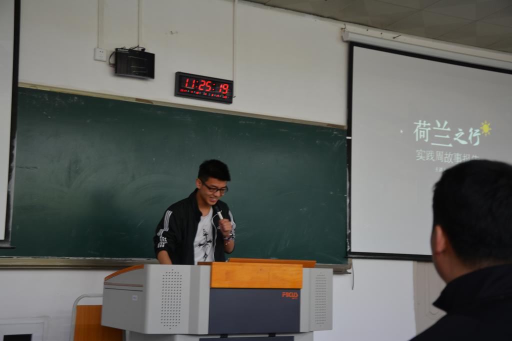 15级机制专业的张一博同学为大家介绍了本次参加荷兰的生产企业项目的情况,就自己的亲身经历和一些有趣的小故事,跟同学们分享了自己在此次荷兰文德斯汉姆大学交流学习之行中的改变,鼓励同学们要勇于尝试,不断突破,用真才实干增强自我的自信心与综合能力。