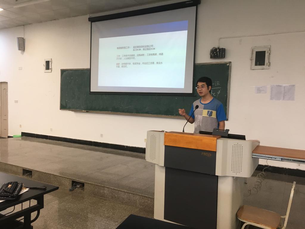 紧接着,我院考取四川大学的2013级机制专业毕业生罗冲、考取西南交通大学的2014级机制专业毕业生彭敬康、考取湖南工业大学的2014级包装专业毕业生张贤珍、考取西南财经大学的2014级汽服专业毕业生罗维怡分别做考研经验分享,从学校专业选择、备考心态调整、笔试复习要点、面试注意事项等各方面向同学们做了分享。四位同学细致的讲解内容,轻松的分享方式深深吸引了到场同学们的注意力,同学们纷纷表示收获颇丰。