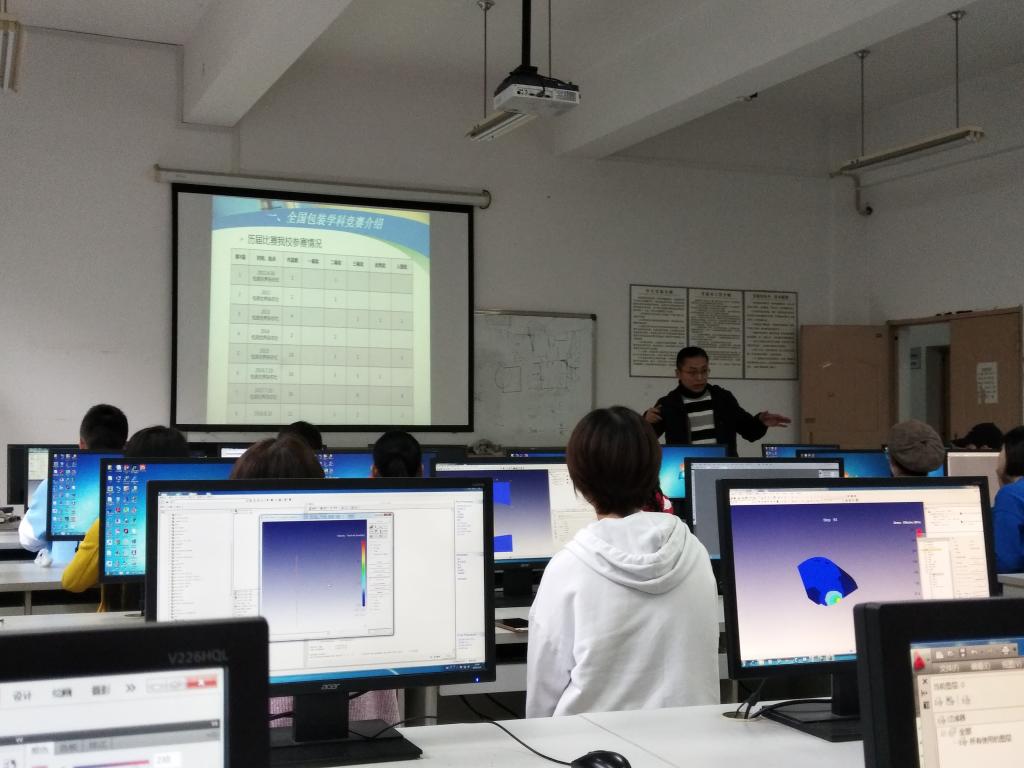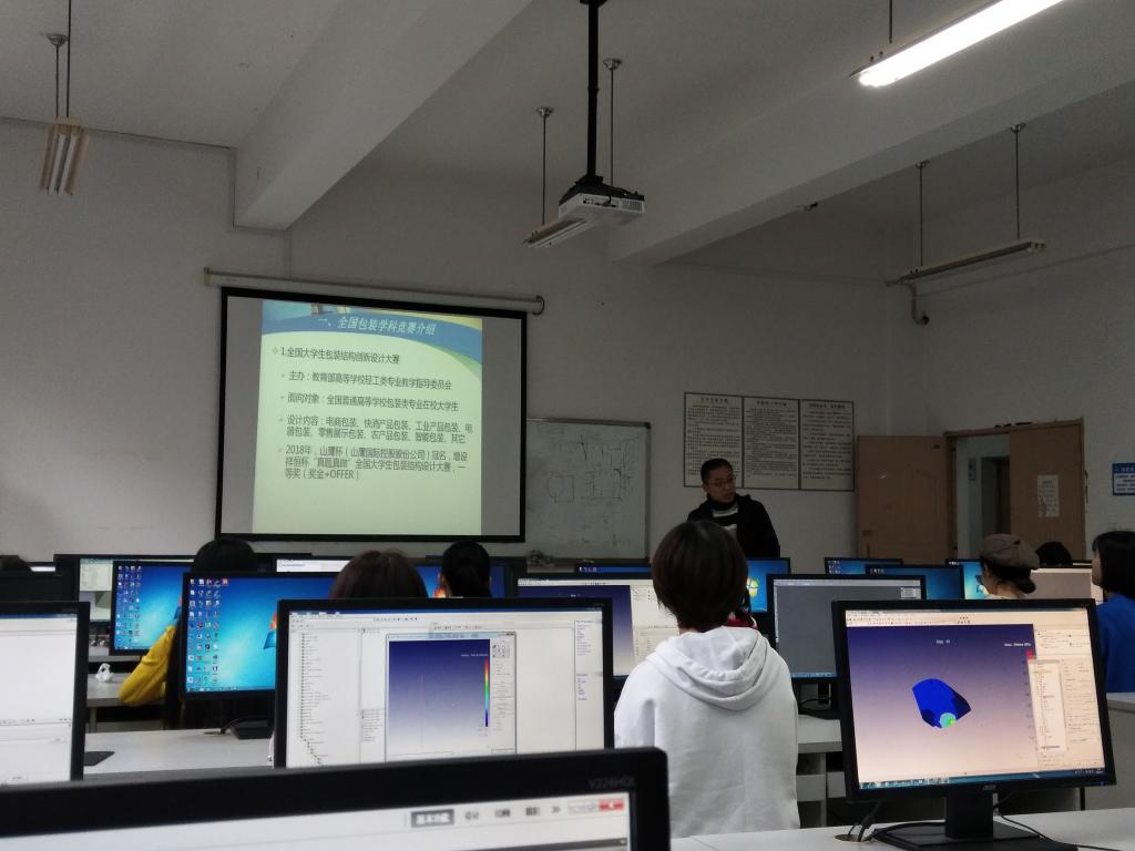 首先,老师用PPT对全国包装学科竞赛进行了介绍以及本次比赛的设计内容。紧接着,老师围绕两大比赛,向同学们讲解了本次赛事的要求,列举出三大自主命题,分别是视觉平面设计、包装结构设计、工业设计。再对“2018年,“山鹰杯”冠名,增设祥恒杯“真题真做”全国大学生包装结构设计大赛、一等奖(奖金+OFFER)”展开讨论。