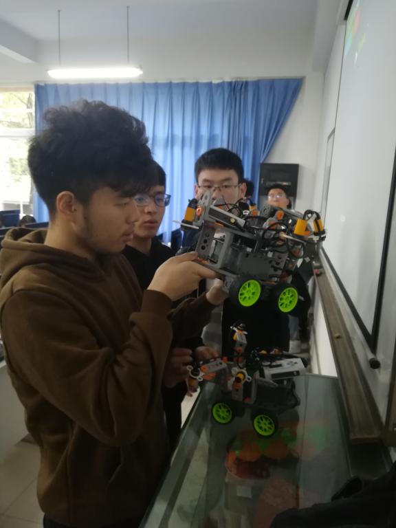 大会开始前,机器人模型被展放在教室,吸引了很多同学参观研究。