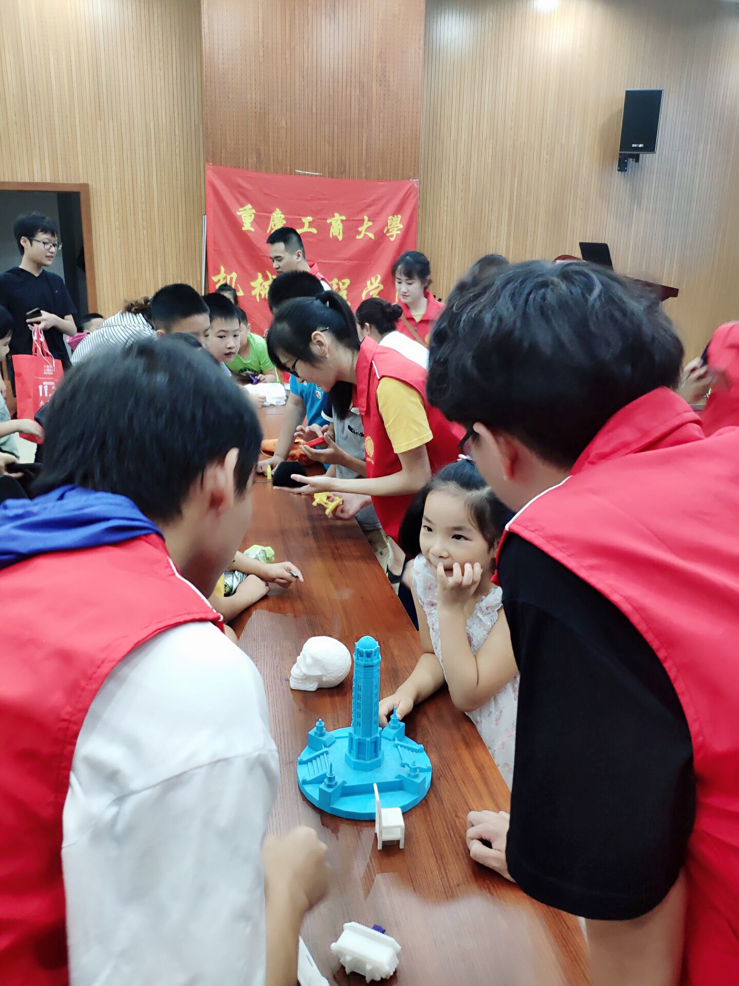 传统文化课堂上,通过传统节日、传统美德小故事等传统文化教学,培养小朋友对中国传统文化的热爱,让他们了解我们中华民族五千年的璀璨成果,增强他们的民族认同感和民族自豪感。绘画课堂上,小朋友们一笔一笔勾勒出自己心中的美好的家园,绿色、和平、幸福小朋友对家园画满祝福。手语舞课堂上,志愿者们融入真情教授《感恩的心》,让小朋友了解无声的世界,用心感受身边的人对自己的关心,并引导小朋友孝敬父母,学会感恩。与专业相结合的特色机器人课堂和3D打印课堂吸引了很多小朋友,在3D打印课堂中,志愿者们提前准备了由学院打印好的成品:重庆标志型建筑—解放碑和工商大学标志性建筑-图书馆等,利用多媒体结合实物生动的向小朋友们讲解3D打印技术。在趣味机器人课堂中,志愿者们现场操作学院智能机器人“NAO”,激发了小朋友对机器人技术的热情,也提升了大学生的专业技能。