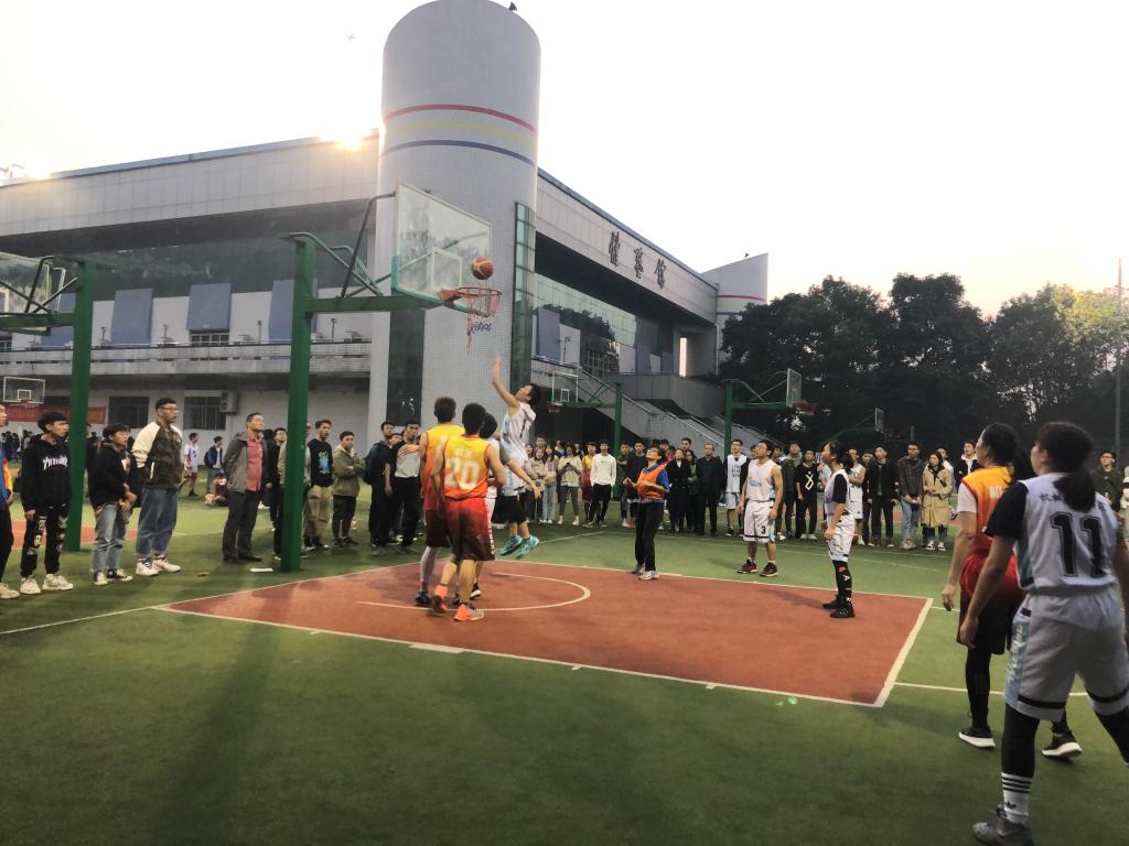 为加强高校校园体育文化建设,培养终身体育意识,营造良好的校园文化氛围以及全面推进素质教育。重庆工商大学“师生杯”篮球赛于2019年11月7日17:40在南岸校区南区篮球场迎来了最终决赛,我院参赛老师田胜利、谢俊、张建恒、吴振宏、王旭东、梁强,参赛学生彭麒、张树林、杨杰、吴曜进、岑琳、刘媛媛、甘雨欣、雷雯婷等篮球队成员以及我院学生会全体成员共同参与到此次比赛中。