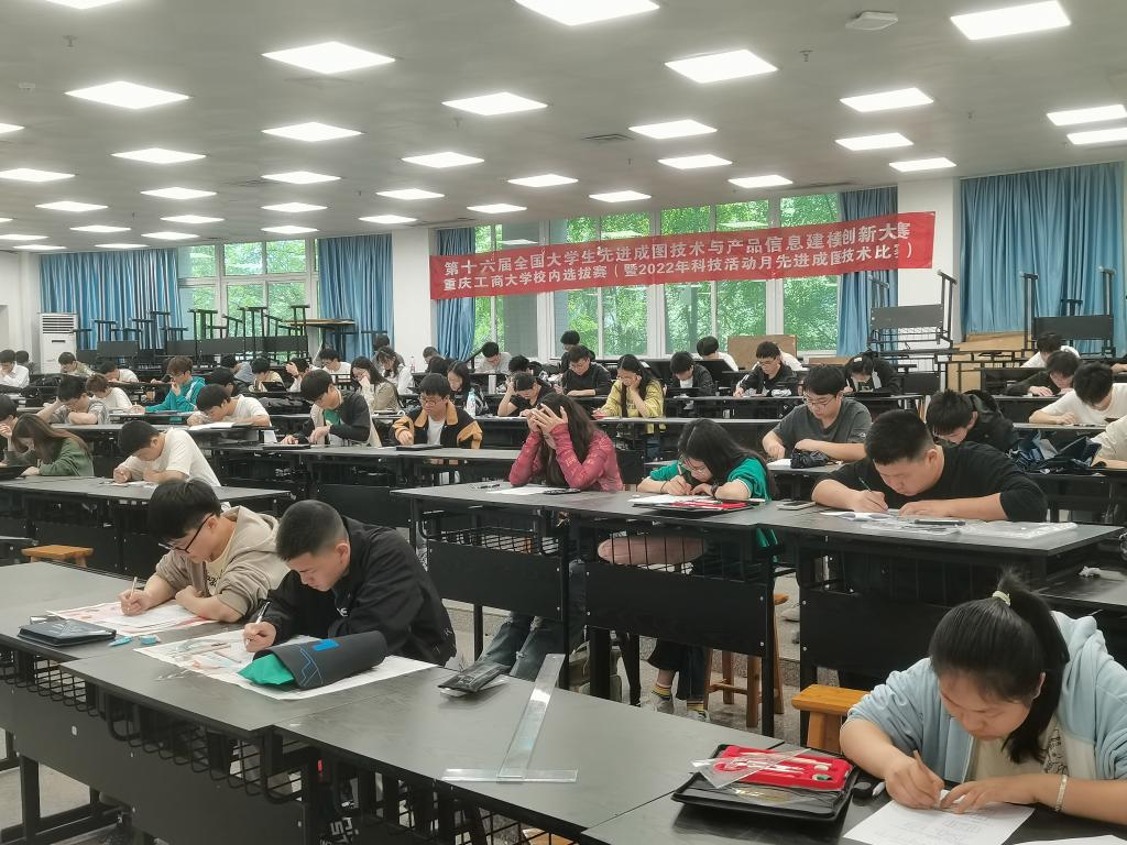 2023年4月22日全天在南岸校区慧智楼90310和90210举行了第十六届全国大学生先进成图技术与产品信息建模创新大赛重庆工商大学校内选拔赛(暨2022年科技活动月先进成图技术比赛)。122cc太阳集成游戏的谭伟老师和谭琼老师担任此次比赛的评委和指导教师。
