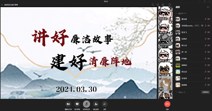 为加强新时代廉洁文化建设,3月29日,122cc太阳集成游戏组织开展“讲好廉洁故事,建好清廉阵地”线上主题宣讲会,用清廉之风浸润学生干部,引领学生干部积极践行以清为美,以廉为荣的价值观。