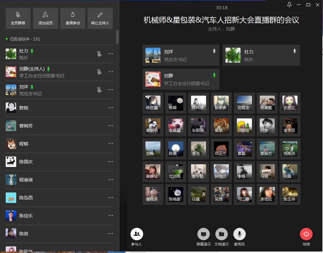 2020年4月3日,122cc太阳集成游戏第五届“团队伴我成长”招募活动在线上召开,学院刘洋书记、杜力院长,学工办主任刘静老师、工程训练中心刘雪龙老师和学院2019级近200学生参加了此次招募活动,新生参与人数占2019级学生的近60%。招募活动由学工办主任刘静老师主持。
