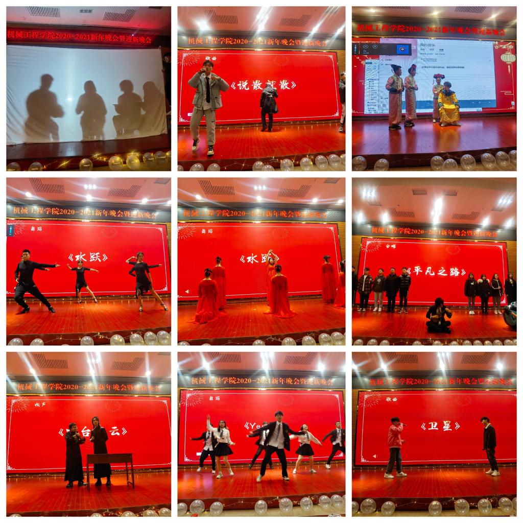 在主持人张汉博和谭蕊的开场致辞下,新年晚会正式开始。学生会成员们精心准备的节目让人眼前一亮,激昂热情的组合演唱《不为谁而作的歌》,充满活力的舞蹈《Yes Ok》,深情款款的合唱《卫星》,诙谐幽默的相声《电台风云》,充满回忆的小品《还珠格格》,古典优美的舞蹈《水跃》,引人共鸣的大合唱《平凡之路》,爆破力十足的歌曲《说散就散》,以及充满青春气息的白幕剧《最好的我们》。中途举行的抽奖和小游戏环节,更是让观众参与感十足。最后,主持人宣布晚会结束,学生会成员合影留恋。