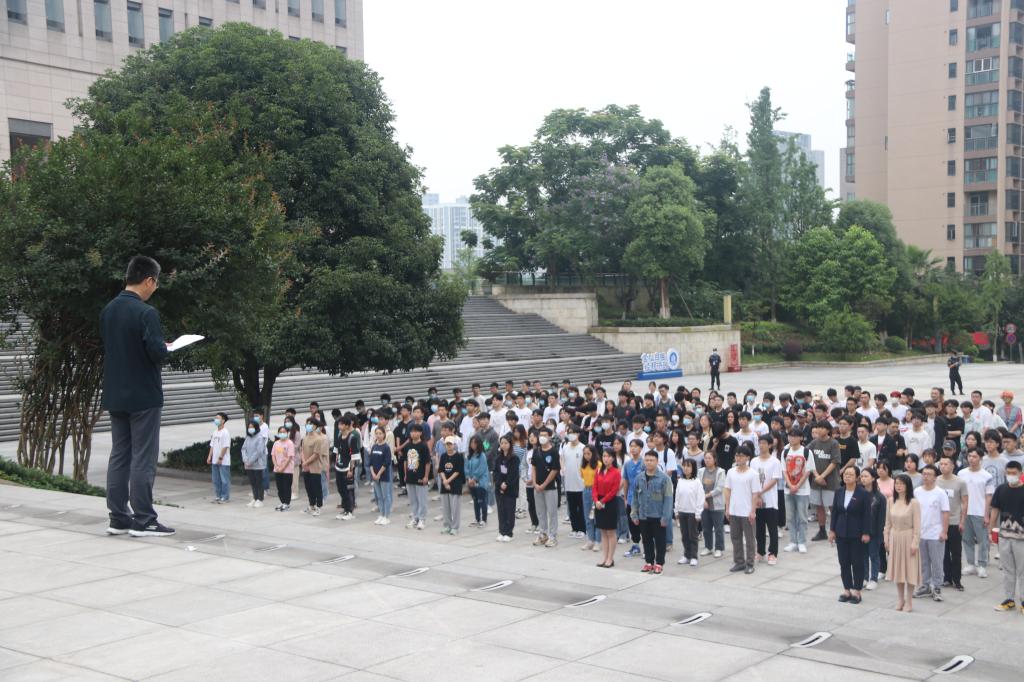 为弘扬传统爱国主义精神,增强机械学子社会责任感,2022年5月30日7:20重庆工商大学122cc太阳集成游戏在南岸校区含弘广场严举行升旗仪式。122cc太阳集成游戏党委副书记、纪委书记陈春洁,学工办主任刘静,20级辅导员向丹丹、饶俊妮、邓诚和20级全体学生参加了升旗仪式。