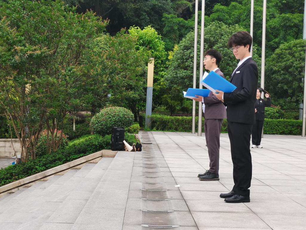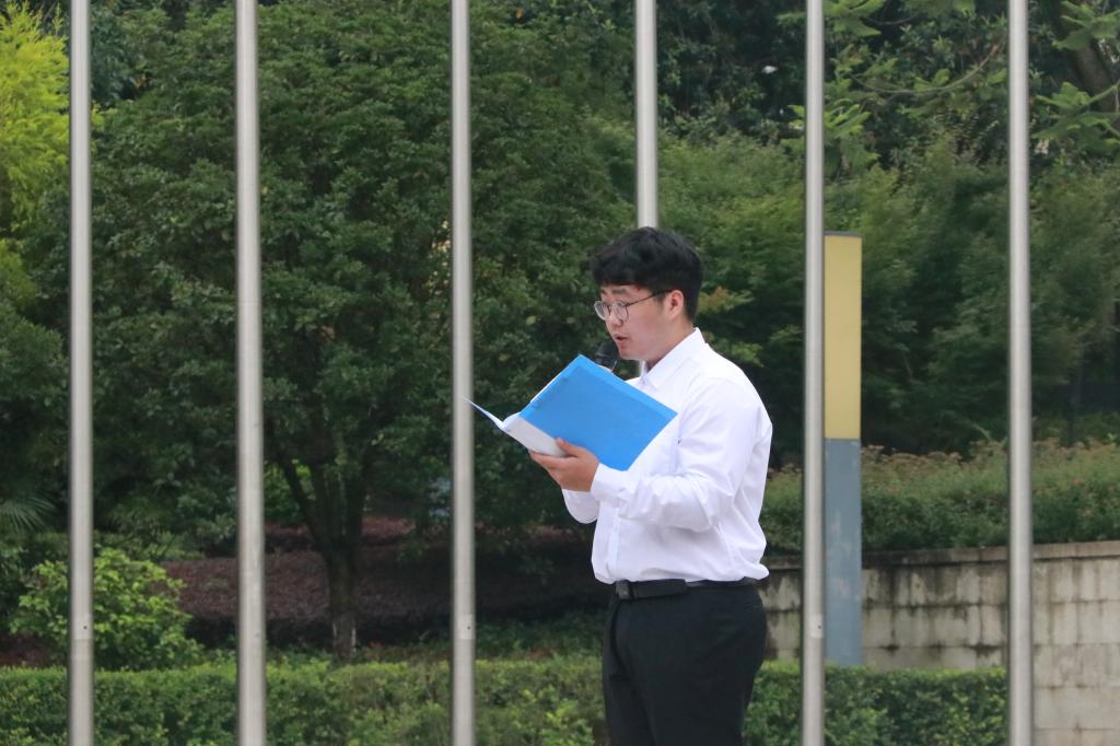 正值重庆工商大学七十周年华诞之际,邓知宇、杜宇同学带来朗诵《七秩重工商,奋进新征程》,向母校、祖国展现青年大学生青春担当。端午将至,杨胜涵同学发表国旗下的讲话《粽香悠悠,爱国深深》,由中华优秀传统爱国文化到当代青年的奋进担当,娓娓道来,深入人心。