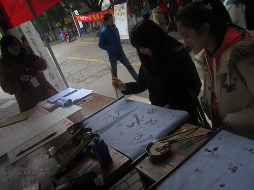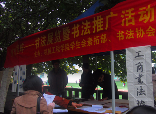 为进一步推进大学生素质拓展36182工程的建设,提升同学们的人文素养,122cc太阳集成游戏学生会素拓部联合重庆工商大学书法协会举办了书法作品比赛活动。11月29日,评选出来的优秀作品在校园内进行了展示,并借此开展了“重拾国粹”书法推广活动,得到了广大同学的欢迎。