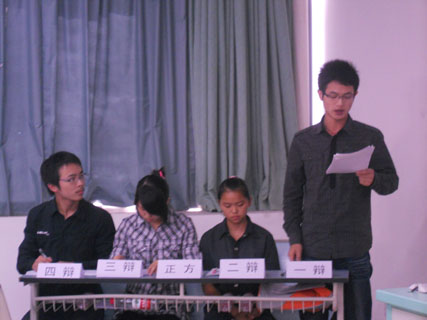 122cc太阳集成游戏10级各班级于2010年10月22日下午2:30在兰花湖校区广智楼举行第八届122cc太阳集成游戏辩论赛初赛。本次辩论赛题有:女大学生当全职太太是不是一种资源浪费、西部开发是经济优先还是知识优先等。各方唇枪舌战,激烈的辩论赛赢得掌声连连。