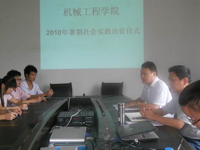 出征仪式上罗卫书记集合自己以前在巴南挂职锻炼的经历给同学们分享了在暑期社会实践活动中的意义和目的,鼓励同学们在社会实践中不断提高自己的实践能力和创新能力,将理论知识与实际活动相结合,营造学习的氛围,克服各种困难,创造性的发挥大学生的聪明才智。刘洋副书记也对社会实践服务团的成员提出了相关要求,要求成员们在活动中注意安全,认真落实和规划各个环节,为本次社会实践的顺利完成打下基础。