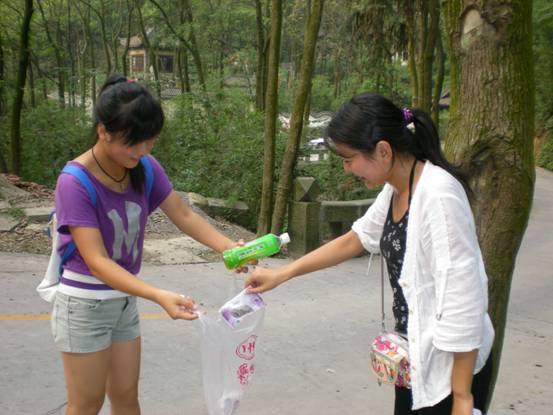 2009年10月30日下午08级包装一班在工商的后山开展了一次以“绿色义工,我们在行动”的班组织活动。在这次活动中班里的同学全部都带上自己寝室的不用的废旧的塑料袋,在爬山的过程中将看见的垃圾放进塑料袋里。在以前我们可以经常看见漂浮在山间小路上的白色垃圾,我想我们每个人都需要为环保做出一份力量,所以我们班上举办了这次活动不仅希望可以培养班上的同学的环保意识,在同学中做出我们的榜样,还大家一个美丽的工商;还希望通过这次活动唤起人们心中的环保意识。