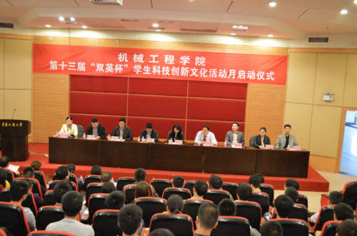 为有效推动我院“以专业工作能力培养”为主线的实践教学的深入开展,培养学生的专业兴趣,提升专业素养。我院于2014年10月31日下午在7200报告厅隆重举行 “双英杯”学生科技创新文化活动月启动仪式。学校学生处处长罗勇、教务处副处长曾晓松,学院校企合作单位重庆双英汽车配件制造有限公司人力资源部经理李红梅、校友代表重庆海扶(HIFU)技术有限公司总工程师王芷龙高级工程师,学院全体领导及科技活动月指导老师出席了本次活动。