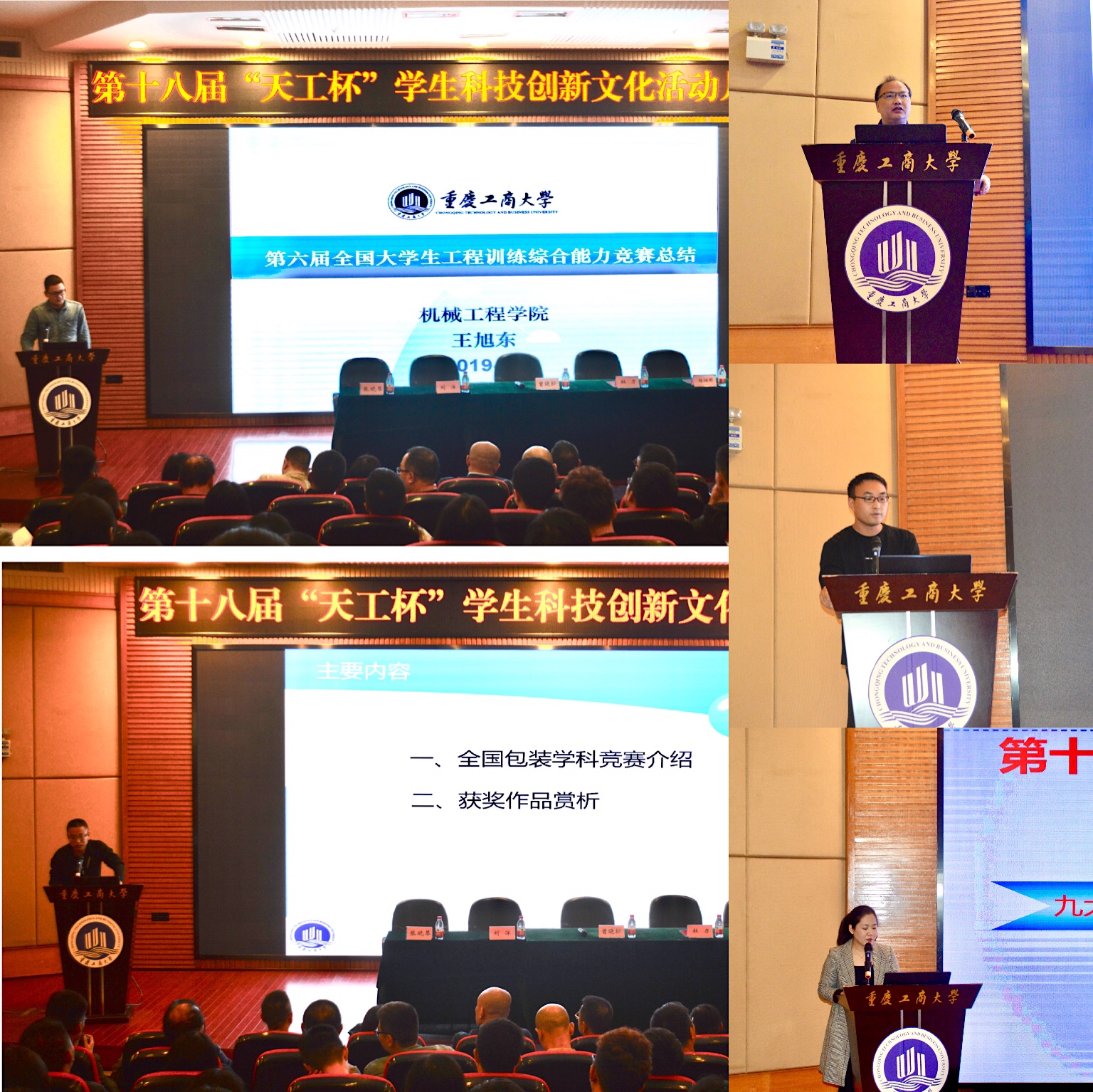 大会开始党总支副书记张晓琴介绍出席活动的嘉宾、领导及老师,对他们的到来表示热烈的欢迎。接着杜力院长提出四个主题词,从“感谢、祝贺、期待、思考”四个方面进行了讲解,感谢各个部门的支持、团队策划、校友赞助祝贺历届“天工杯”所取得的优异成绩期待通过工程“大染缸”锻造出聪明睿智,刻苦实干,严谨细致,团结协作的合格工程专业大学生。接下来学科竞赛指导老师谭伟、张书彬、王旭东、蒋昀赟老师分别介绍了往年机械学院学生参加省部级及以上赛事获奖情况,展示了往年参赛学生的作品和成绩,分析了122cc太阳集成游戏的科创现状,让学生们对赛事有了更深一步了解。之后科技活动月组织老师邢月军介绍了“天工杯”学生科技创新文化活动月九项赛事以及各项赛事的指导教师、QQ群和时间安排。最后教务处副处长松为同学们讲述了科技创新的重要性,鼓励同学们积极参加学科竞赛,同时对机械学院的学科竞赛予以肯定。
