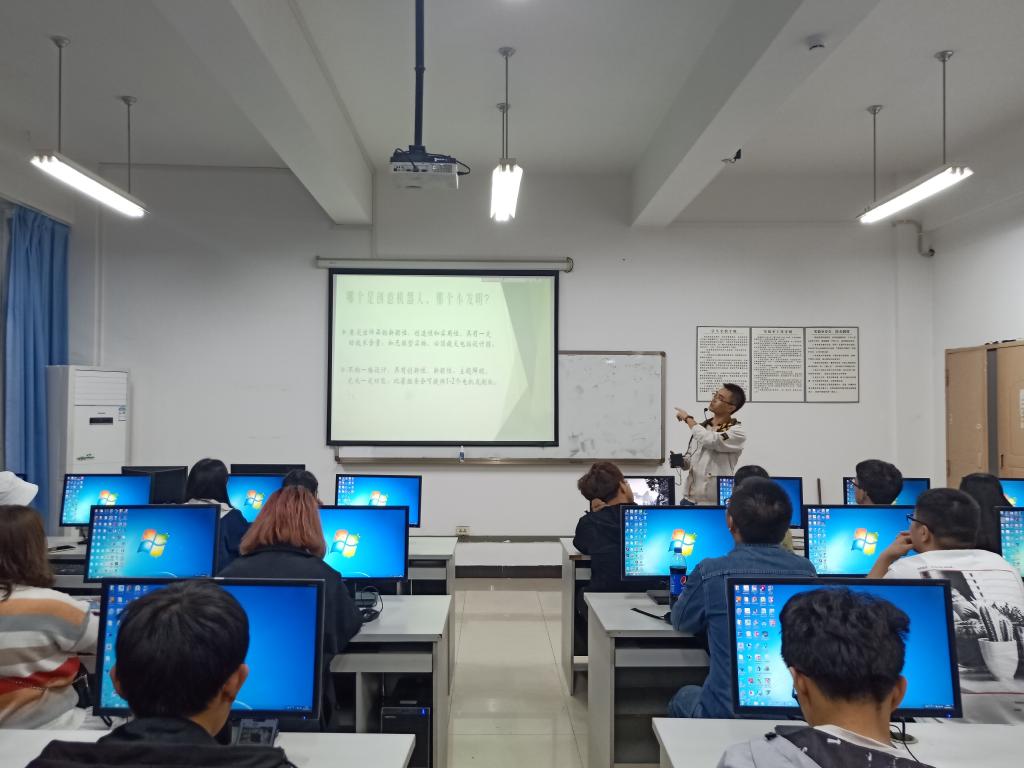 2019年10月17日晚,122cc太阳集成游戏在10209教室开展了机器人比赛宣讲会,主讲为机电系主任王洪建老师,上届获奖学生代表胡崇尔、蒋仕刚和郑仝也在会上进行了经验分享。