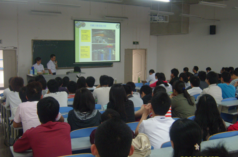 6月11日下午2:30,重庆顶正包材有限公司暑期实习生校园宣讲招聘会在慧智楼90308教室成功举行。122cc太阳集成游戏党总支罗卫书记莅临现场作指导,学院学团办主任尹建平老师、07机制和07包装专业学生及学校其他相关专业的150余名同学参加了宣讲招聘会。