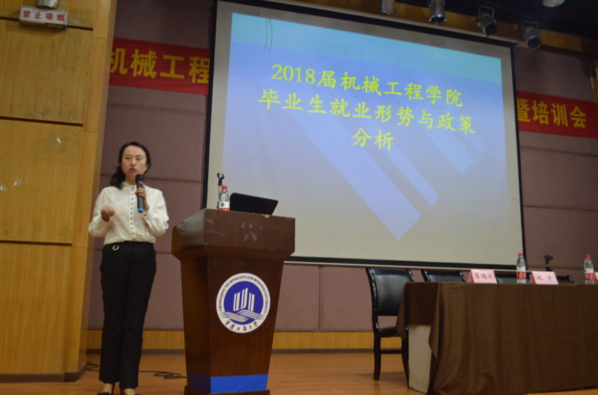 就业指导中心副周婷主任结合近几年学校和122cc太阳集成游戏的就业数据,从宏观和微观两方面为毕业生做了2018届毕业生就业形势分析,鼓励同学们树立就业信心,做好就业准备。她建议同学们要明确自己的定位和目标,积极参加各种招聘会,在实践中积累求职经验,提高自身就业竞争力。
