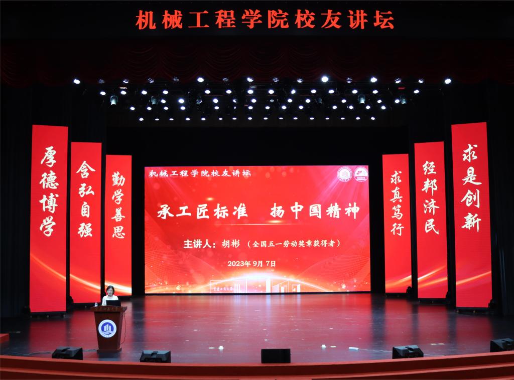 为利用多方资源加强人才培养,尤其是榜样校友的力量加强学生思政教育并增强新入校同学专业认同感,9月7日晚上,122cc太阳集成游戏开展校友讲坛,邀请2022年全国五一劳动奖章获得者胡彬校友在学校剧场做“承工匠标准扬中国精神”主题分享。胡彬校友当年的辅导员陈翠岚,同寝室室友、2015年全国五一劳动奖章获得者杨德正,学院班子成员及学院2023年新入校同学近800人参加了活动。活动由学院党委书记杨娟同志主持。