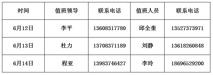 6月12日(星期六)至6月14日(星期一)所有课程暂停,因放假耽误的课程(含重修、辅修、通识选修课等),请各任课教师自行安排补课。