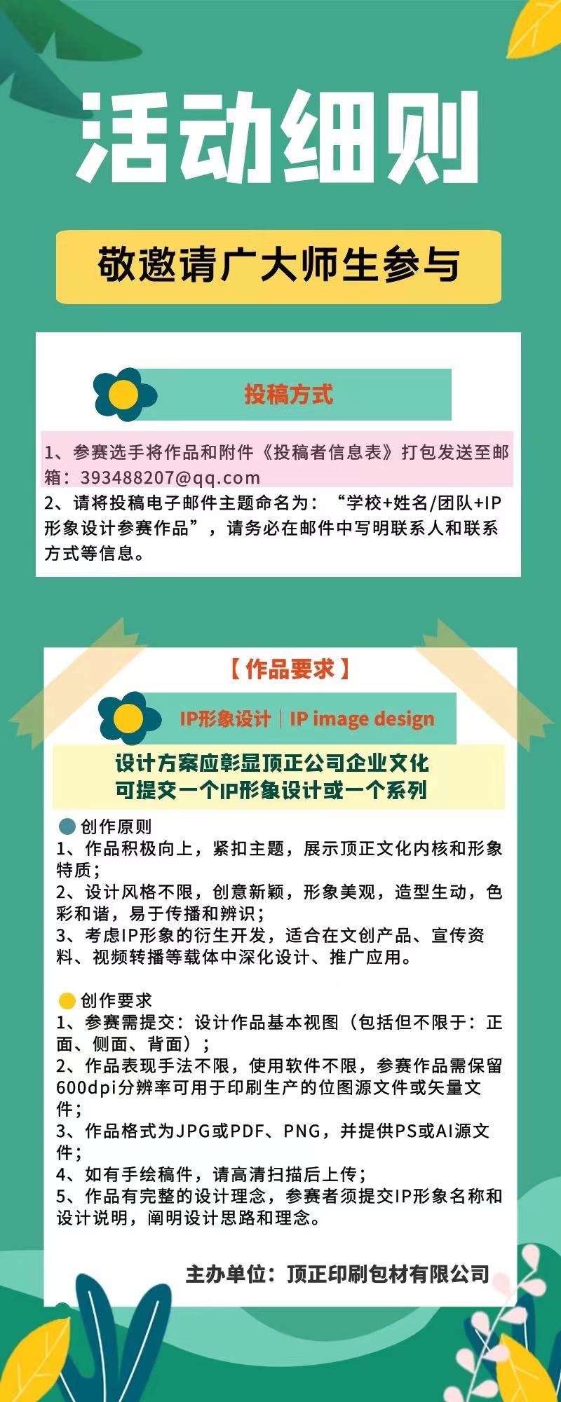 2、请将投稿电子邮件主题命名为:“高校名称+设计师/团队+IP形象设计参赛作品”,并务必在邮件中写明联系人和联系方式等信息;