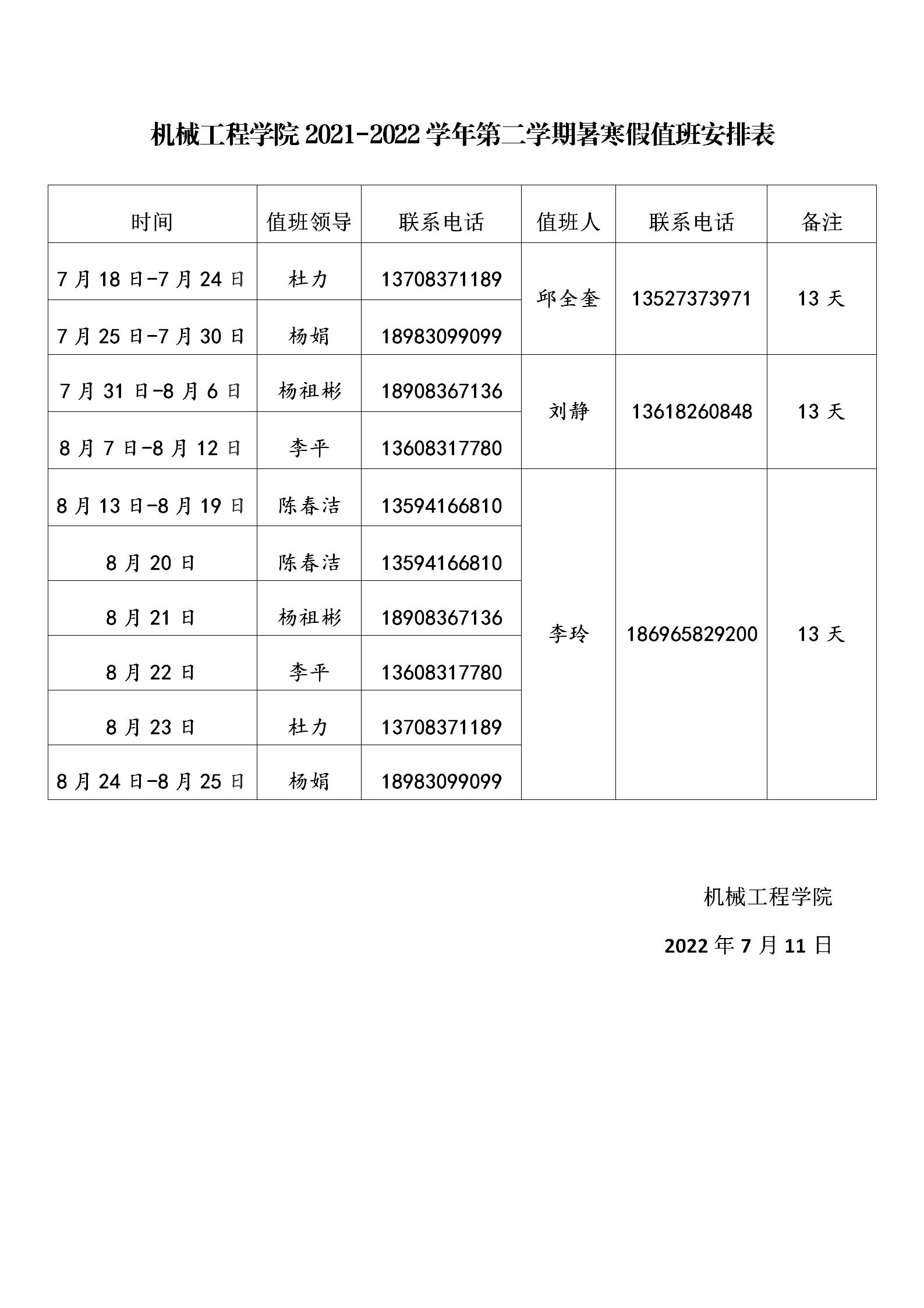122cc太阳集成游戏2021-2022学年第二学期暑寒假值班安排