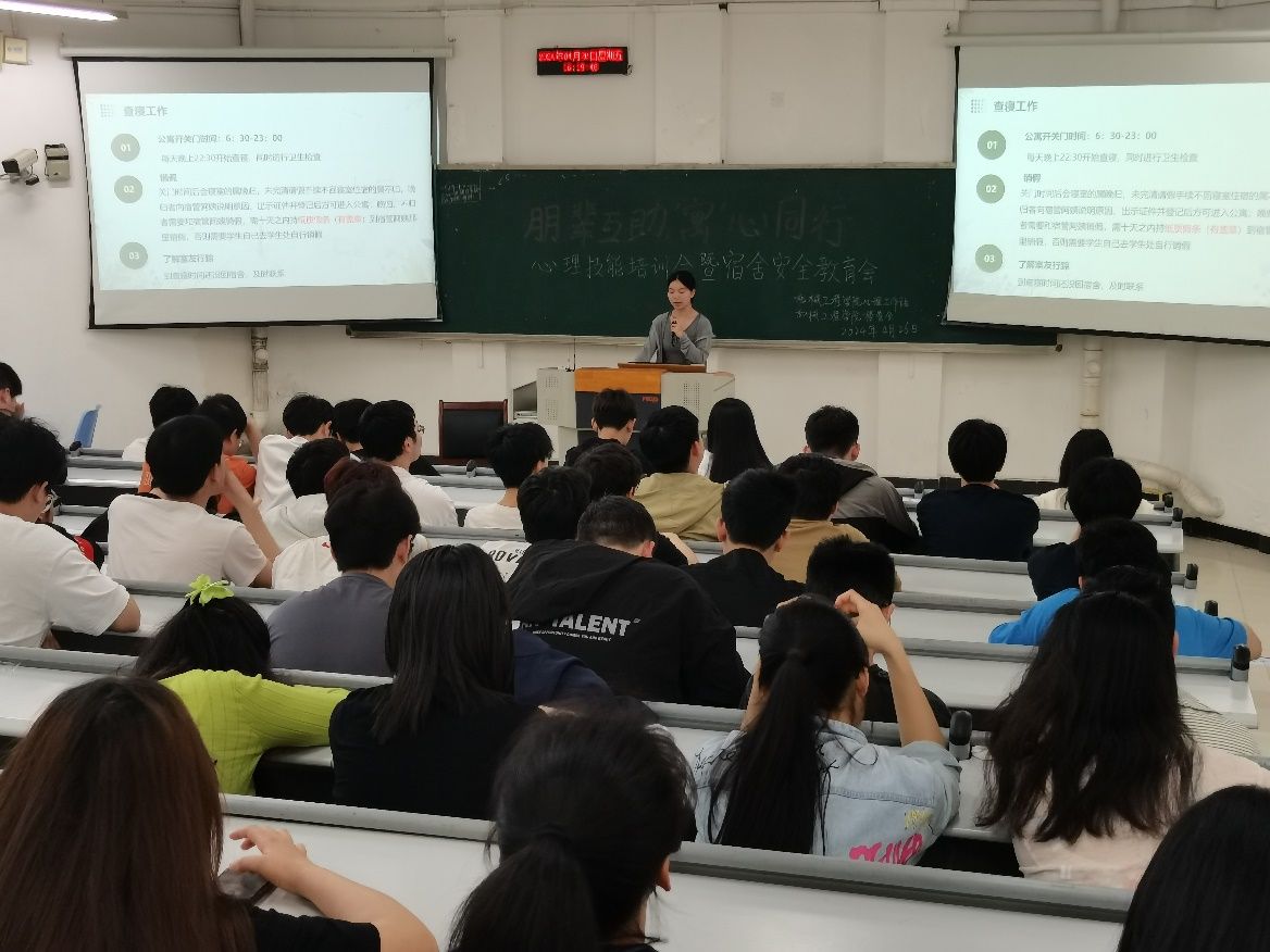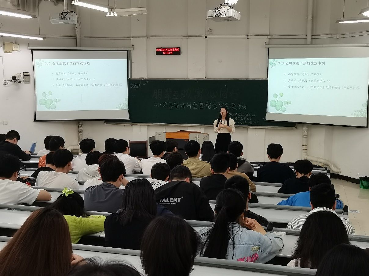 为进一步推进“一站式”学生社区建设,落实心理育人进公寓,强化学生干部对心理健康、公寓管理的正确认知,提升应对心理危机的基本技能,我院心理工作站联合楼管会于4月26日在广智楼20211召开了以“朋辈互助,‘寓’心同行”为主题的心理技能培训会暨宿舍安全教育会。此次活动由学院心理专项负责人顾咸霜主持,学院党委副书记陈春洁、兰花湖片区楼管会负责人周委、心理工作站全体成员、2023级楼栋干部及寝室长参加。