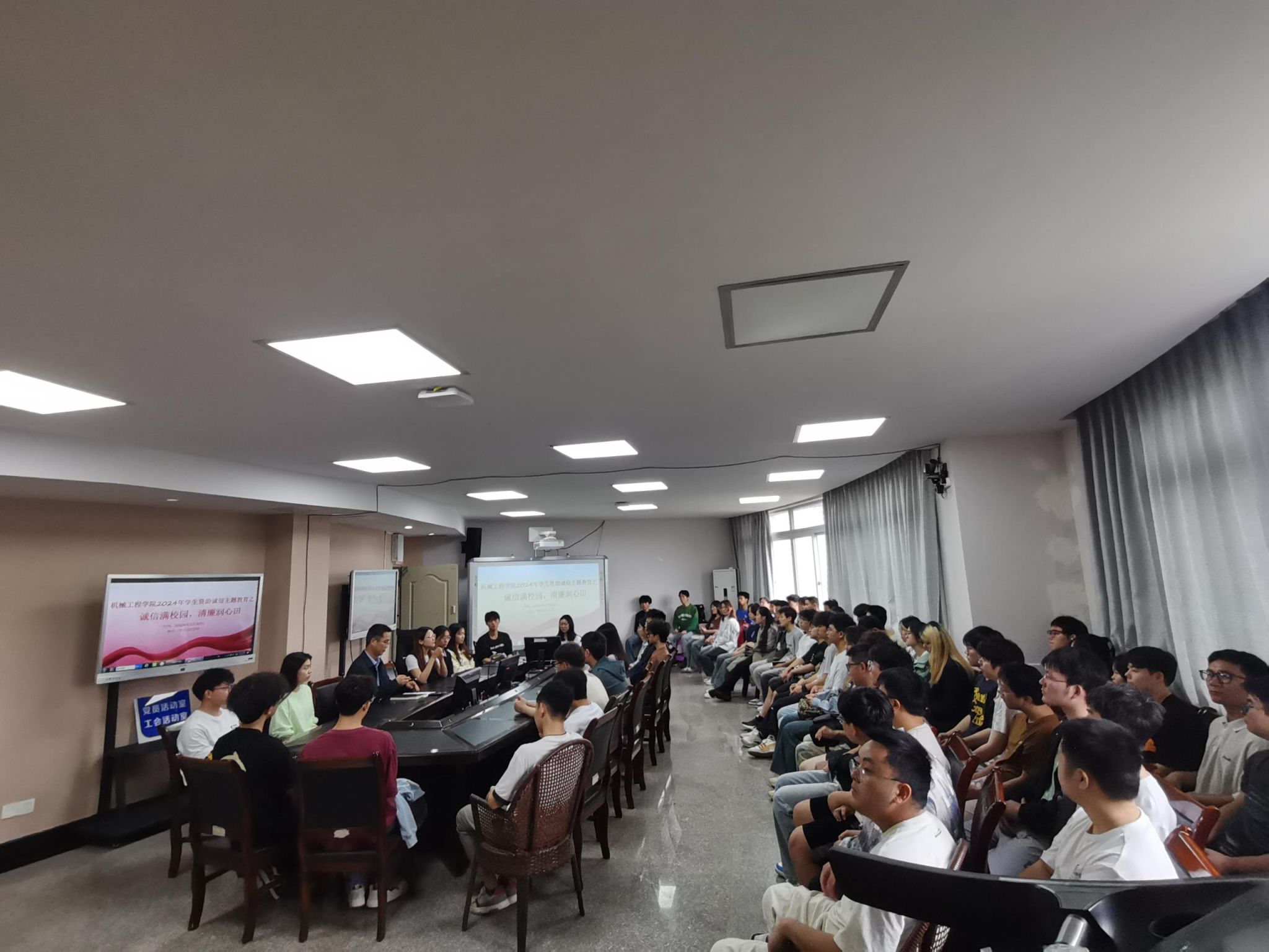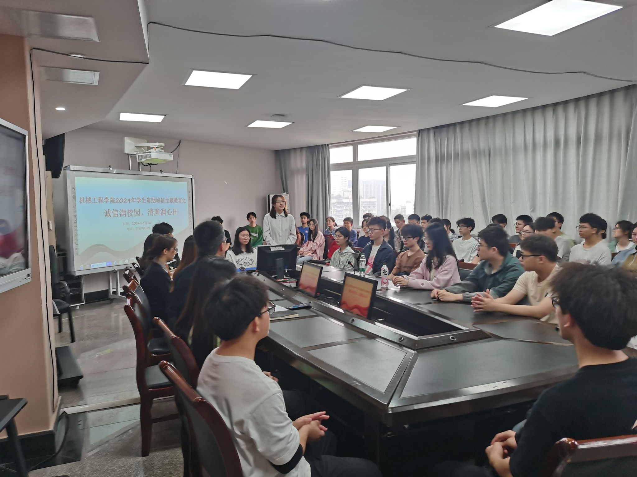 6月初,全院4个年级57个本科班级围绕 “诚信满校园,清廉润心田”主题相继开展班会。辅导员们以此为契机,向学生宣讲了国家、学校、社会相关资助政策安排,特别强调了诚信的重要性以及清廉的意义所在,让同学们对各类奖助贷政策有更深入了解的同时,深化学生知恩感恩、励志成才以及诚信廉洁的意识。